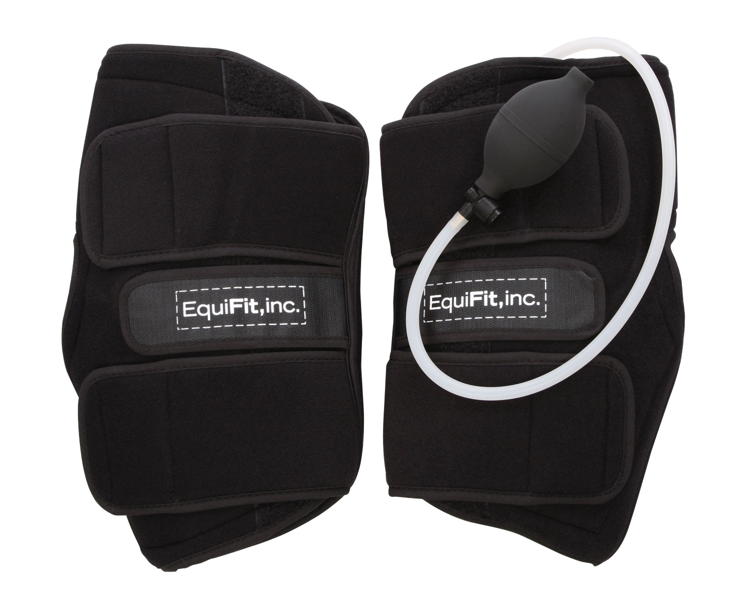 EquiFit® GelCompression HockBoots™ from the GelCompression Therapy Line help reduce inflammation, control swelling and decreases risk of injury. GelPaks adhere to an outer shell that provides air compression via hand pump. They retain intense cold while conforming and remaining pliable out of the freezer. May also be used to apply heat. Pair.