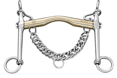 The Herm Sprenger® HO Revolving Cheek Weymouth lets the slanted mouthpiece with a rounded port and cheeks work independently of each other. The cheeks act on the poll without increasing pressure on the tongue at the same time. There is no tilting through the single sided rein aids. Sensogan.