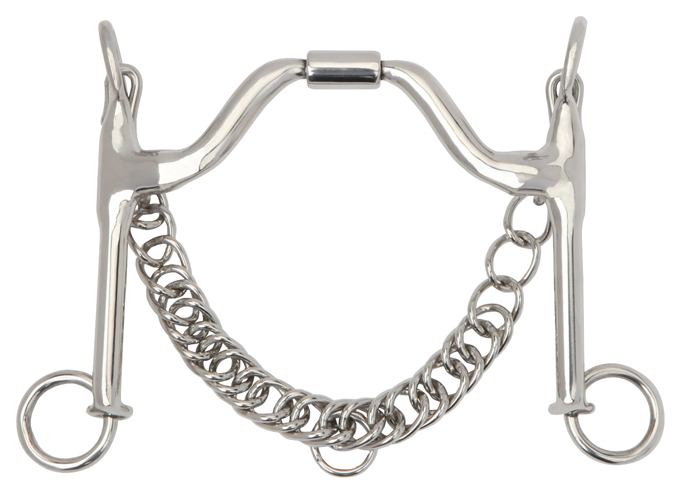 Designed for horses that are considered finished, it has a generously wide port that allows room for the tongue to pass under the bit and swallow. This mouthpiece applies little to no tongue pressure, working primarily off the bars, chin and poll.