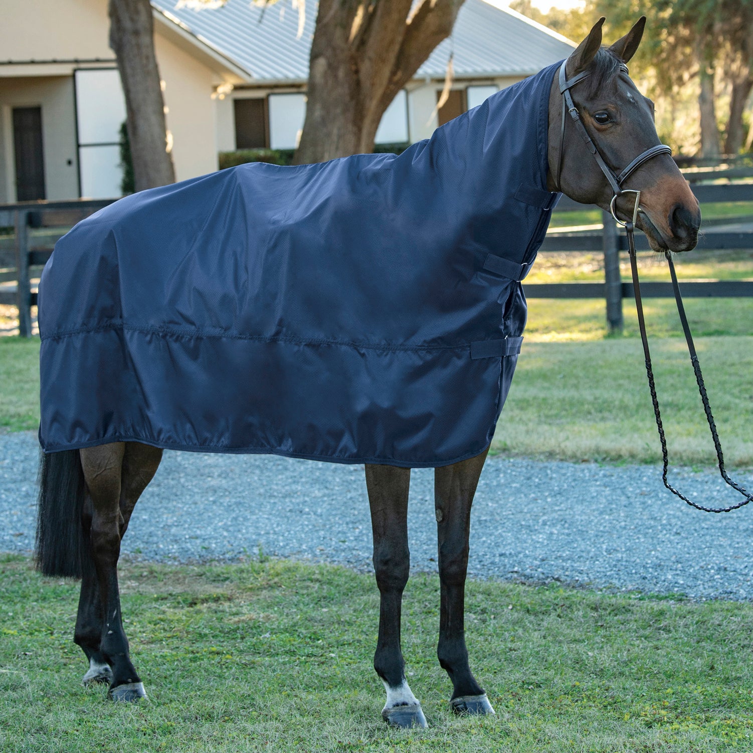 Note: This is not a turnout sheet. It is meant only as a shield to layer over a horse while he is being held.