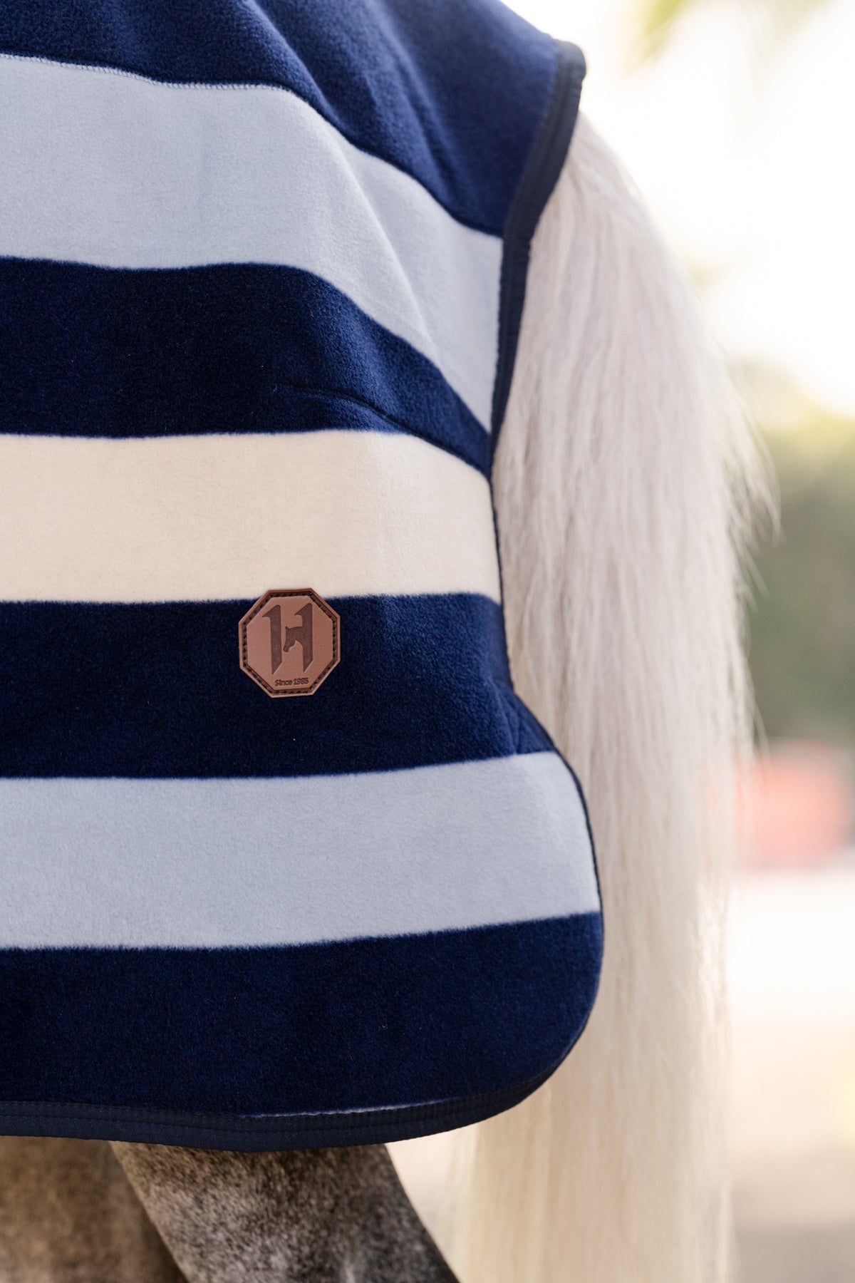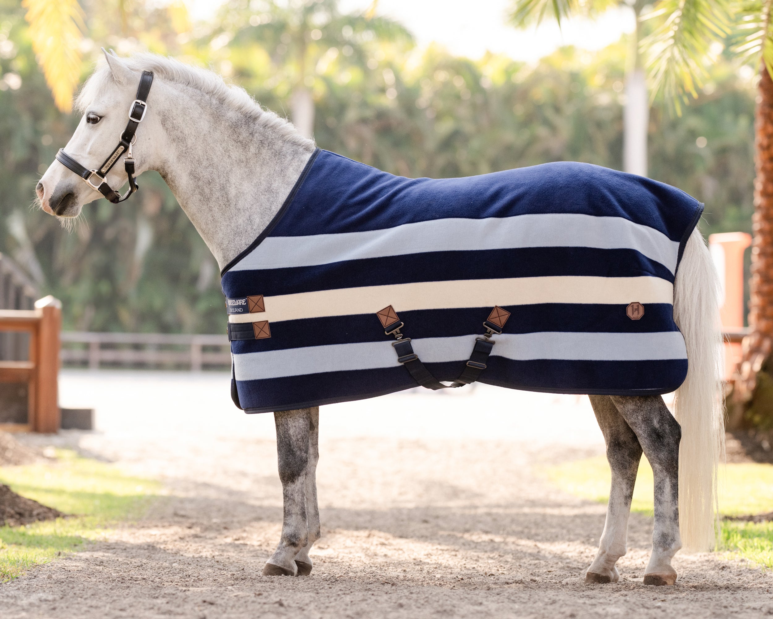 Horseware® Ireland Newmarket Pony Fleece Cooler is a luxurious, double-bonded 500g anti-pilling fleece for optimum moisture management. Straight front closure, two crossed detachable surcingles, two leg arches and a tail cord. Stylish Newmarket Witney pattern with timeless heritage leather detailing.