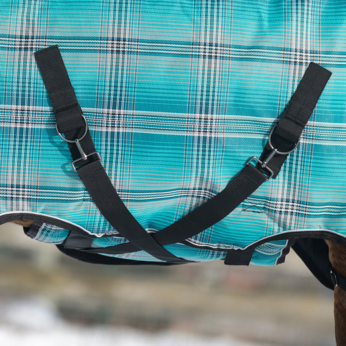 Under the Textilene®, a 100% waterproof and highly breathable layer keeps your horse dry. An inner layer of exclusive CoolPlus® pulls moisture away from your horse to help keep the inner climate dry. A 180-gram layer of hollow fiberfill acts as insulation to create mid-weight warmth.