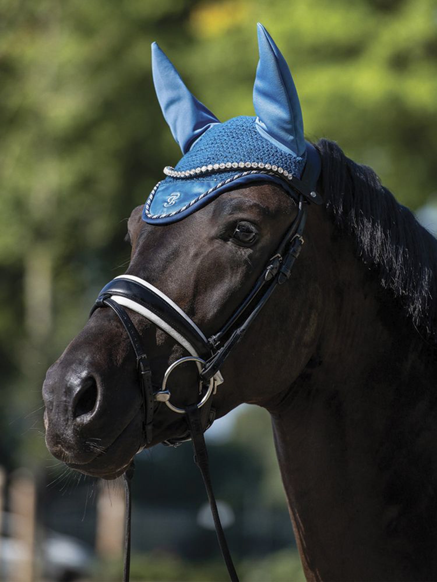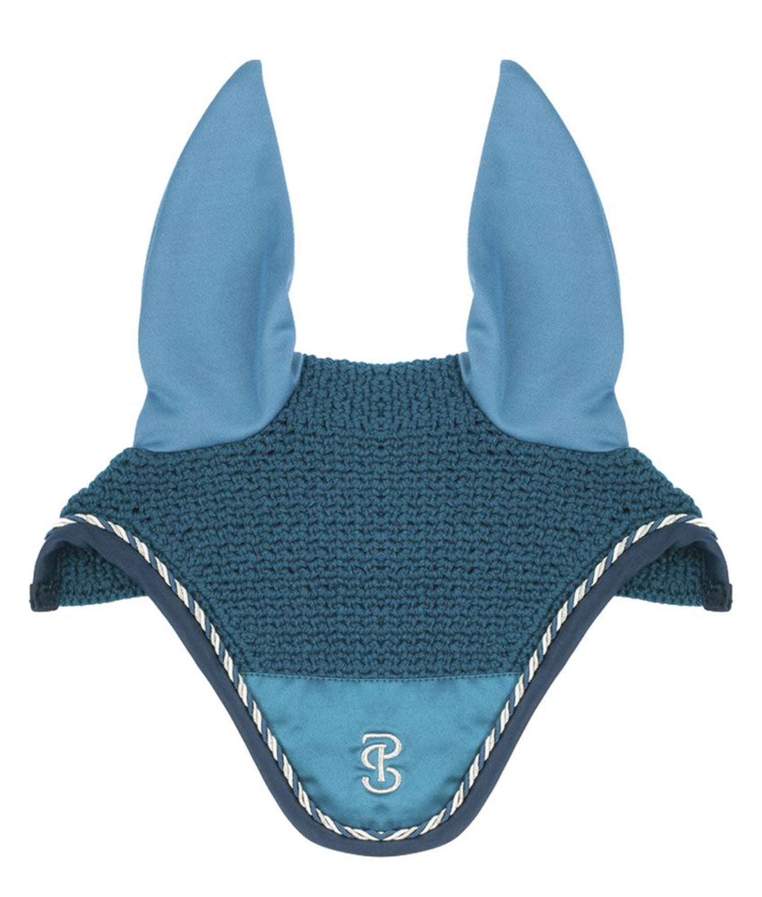 The PS of Sweden Signature Ear Bonnet has a shapely fit and elasticized ear covers. This fly bonnet is made from stretchy, breathable, antibacterial quick-dry material with a hand-knitted crochet body. Designed to comfort sensitive horses, it features decorative details, including braided rope trim, a fabric front embroidered with logo and soft fabric trim.