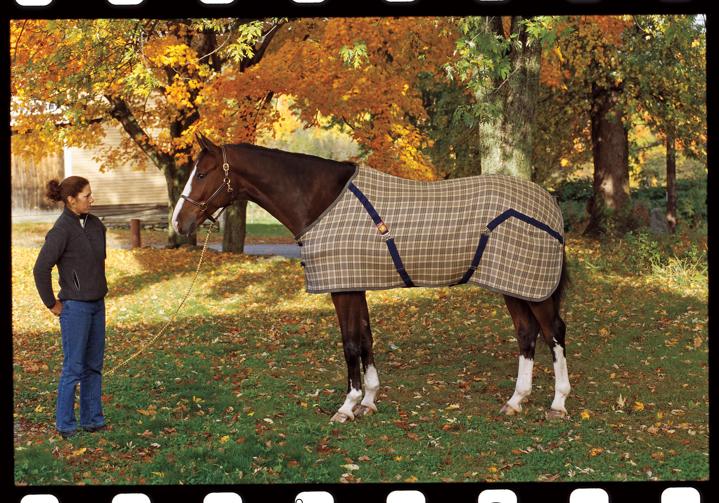 The Original Baker® Blanket is made of a durable, 12 denier triple-woven acrylic fabric. The blanket is warm, but not bulky, and presents a classic look equestrians love. The comfortable, contoured cut stays secure with bias surcingles and a double front closure.