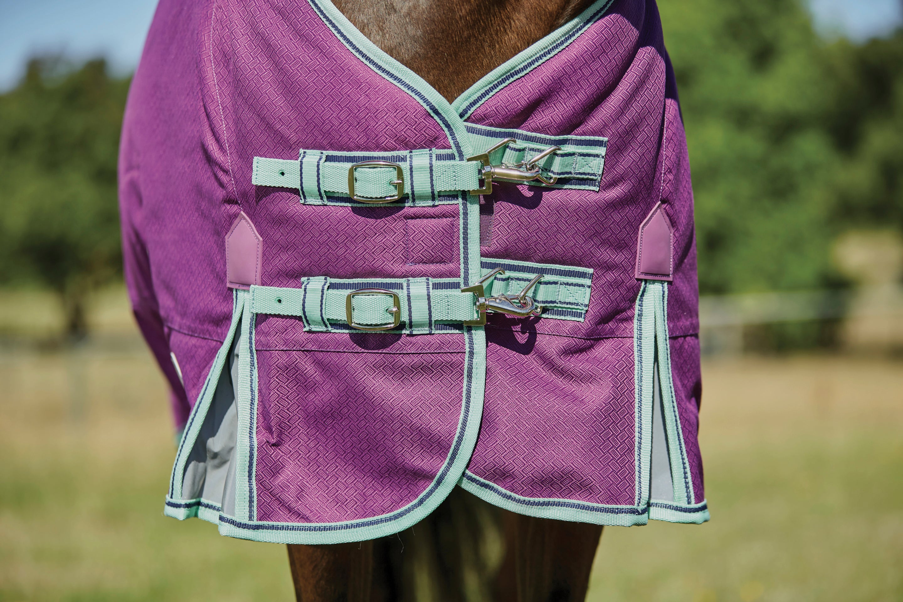 The super-strong and durable 1200 denier triple-weave outer shell with repel shell coating is both waterproof and breathable. A smooth 210T nylon is frictionless against your pony. Freedom system cupped shoulder darts with forward positioned gussets give your pony the ultimate freedom of motion and is compatible with WeatherBeeta’s new liner system.