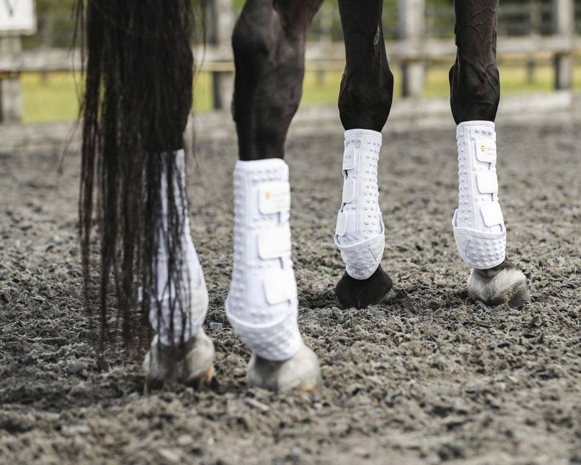 Equilibrium Stretch & Flex Training Wraps with the latest in technical materials keep your horse’s legs cool while allowing natural movements. These soft and comfortable support boots are suitable for schooling, hacking and everyday use. They are easy to fit, easy to wash and long-wearing.