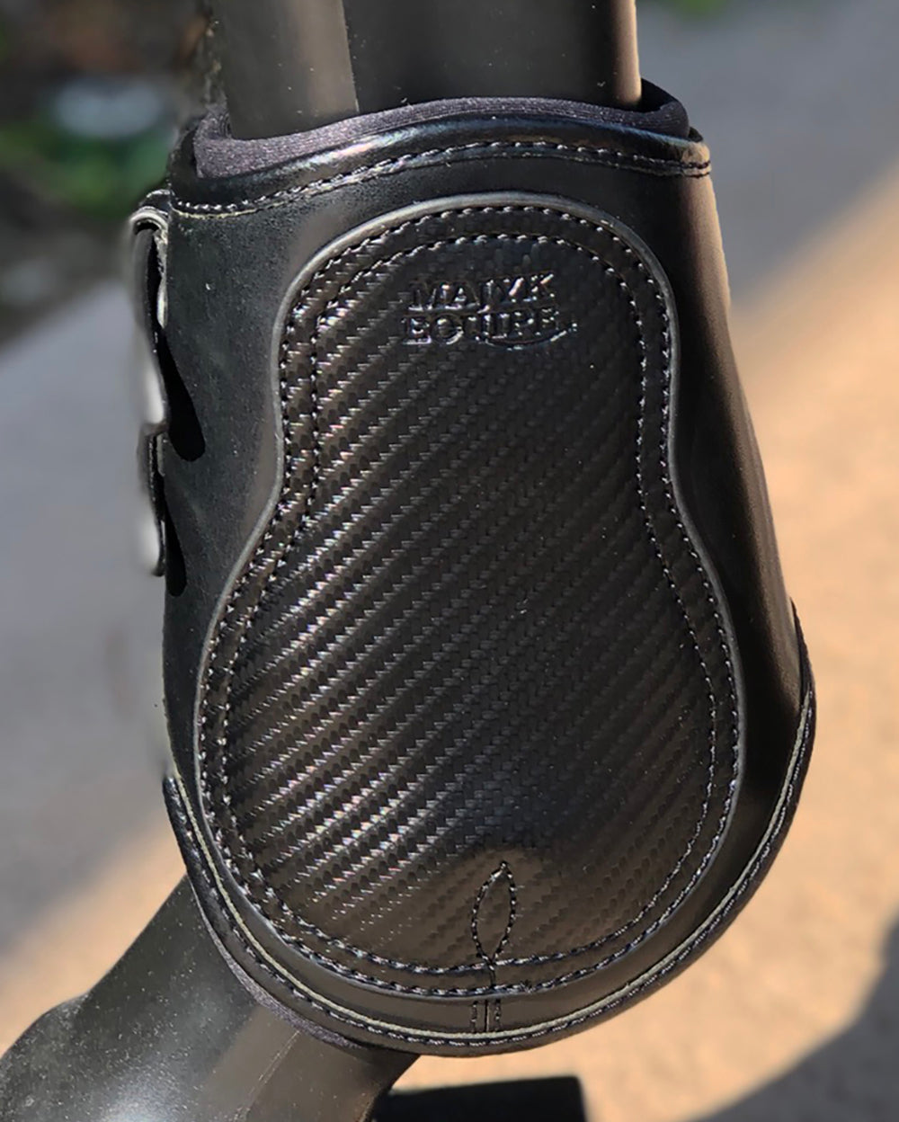 The Majyk Equipe® Estrella Carbon Leather Fetlock Boot is the perfect way to make a statement in the show ring. This is a luxurious leather boot with a subtle touch of sleek and sophisticated European carbon design. It is made 100% from the finest Argentine leather, some of the best in the world, chosen by Audi, BMW and Porsche and used in elite polo saddles and equipment. An anti-scuff coating maintains the great look.