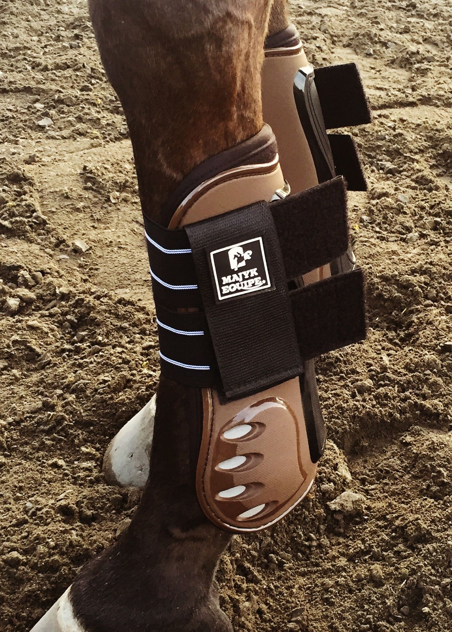 This Majyk Equipe® Vented Infinity Jump Boot with Arti-Lage™ Impact Technology is uniquely molded from German grade BASF TPU. The outer shell is carefully engineered so that the main shell is soft enough to wrap comfortably around your horse’s leg and flex with movement, while the harder strike area is built to withstand shock at a much higher level.