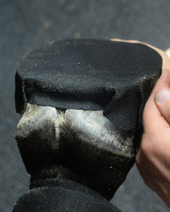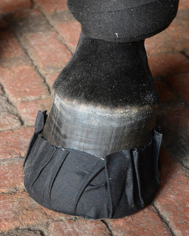 The hoof can be packed and/or medicated as normal. Apply to clean, dry hooves. Not intended for use in turnout. Intended for one single use per pair.