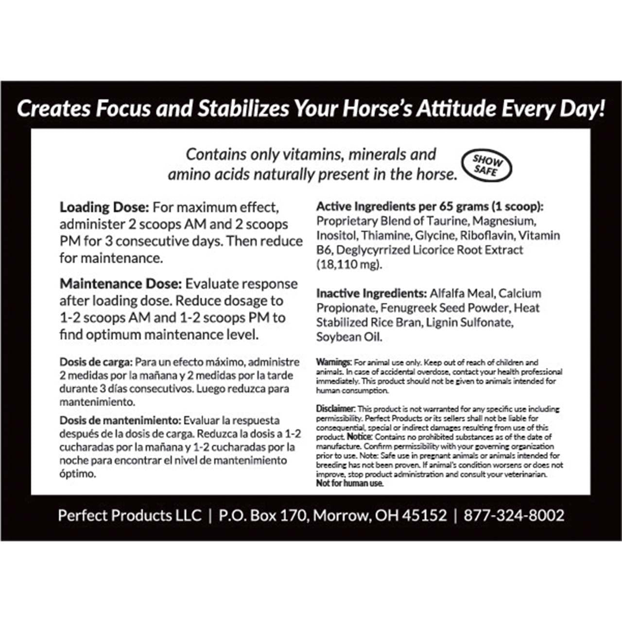 Perfect Prep EQ™ Training Day+ Calming Pellets is the most powerful daily equine calming formula from Perfect Products. Made in the USA, this supplement helps relax even the most anxious and overreactive horses. Fed daily, it helps create focus and stabilize attitude. Training Day+ Pellets include the addition of gastric soothers for additional comfort and calming. Effects begin immediately and build gradually over three to five days.