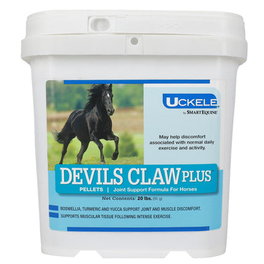 Devil's Claw Plus™ Pellets by SmartEquine™ is the formula you’ve come to know and love, now in pellets! An herbal supplement that provides devil's claw extract, 3,200 mg yucca, boswellia extract, and grape seed extract to support a normal inflammatory response. Devils Claw Plus’s potent blend of herbal extracts and antioxidants were selected for their aid in protecting connective tissues from free radicals and supporting comfortable movement. The antioxidants in this formula include vitamin C, grape seed extract, turmeric, and vitamin B5. Devils Claw Plus Pellets may help with daily discomfort associated with exercise and activity, along with supporting muscular tissue following more intense work. Contains a prohibited substance. Joint strength and mobility for all levels of horses. Powerful herbal and antioxidant blend supports free and easy movement. Note: Do not feed to pregnant mares.