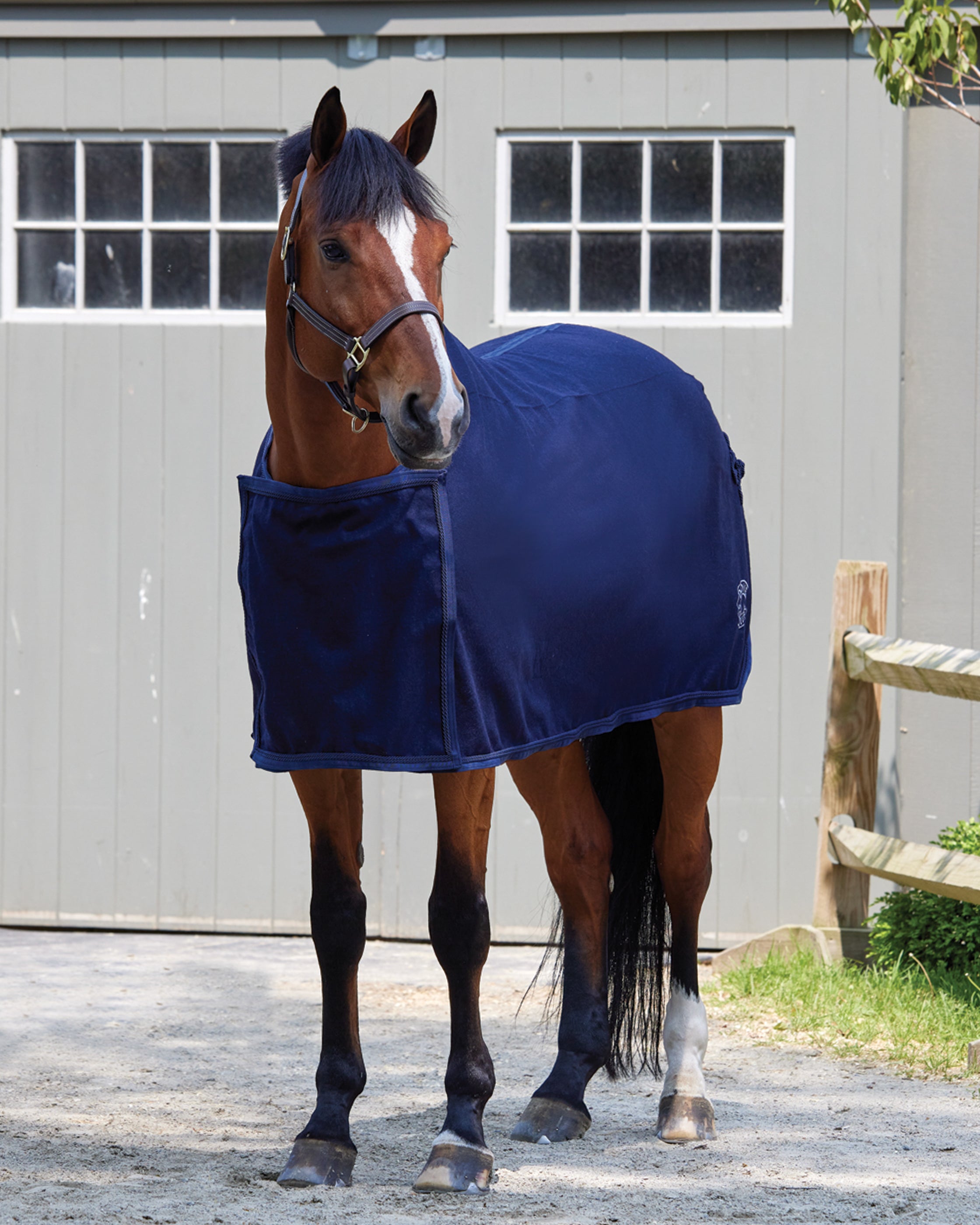The DS Awards Cooler is truly suited to any champion. It is beautifully made from high-quality, wool-blend fabric that wicks moisture, offers thermoregulation and retains its attractive finish. Wool fibers make it highly breathable and allow the horse’s body temperature to reduce slowly and effectively after a workout.
