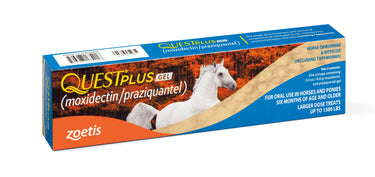 Quest® Plus Wormer from Zoetis™ provides effective control against a broad spectrum of internal parasites. This horse dewormer controls worms and bots, small strongyles larvae and eggs and tapeworms. It also delays the reappearance of strongyle eggs for 84 days and kills small strongyles in the encysted state a single dose. It's "sure dial" syringe makes correct administration easy. Contains: 20 mg moxidectin/ml, 125 mg praziquantel/ml. Each 4 oz. tube treats 1,500 pounds horse body weight.