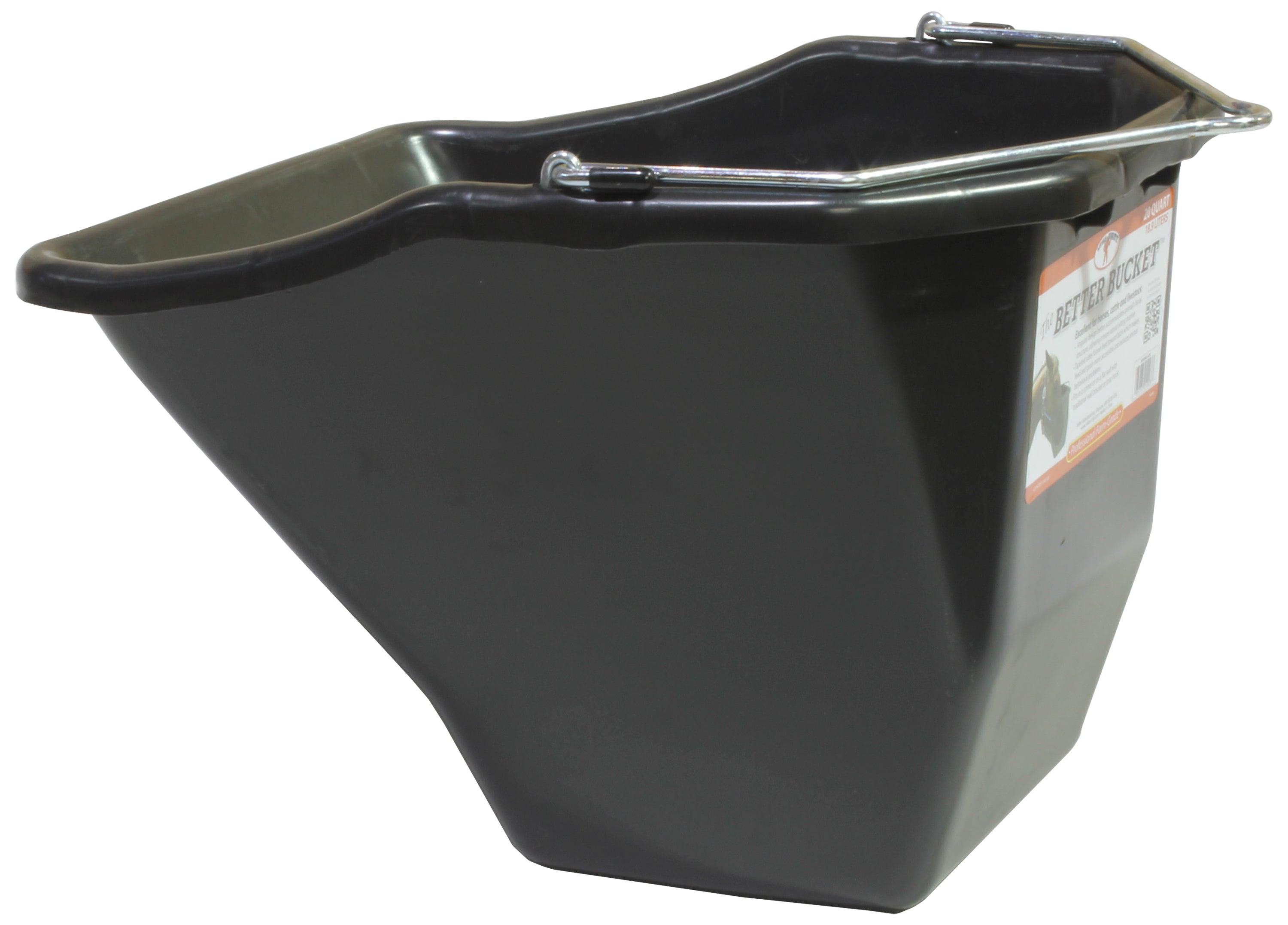 The Better Bucket has an ergonomic design that best accommodates the shape of a horse’s head. Tapered sides funnel grain toward the back of the bucket to give the horse optimal accessibility, while a flat back provides stability against a stall wall or pasture fence.