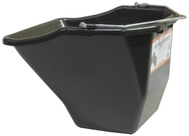 A heavy-duty handle makes carrying easy. This feed bucket is made of durable, impact-resistant, high-density polyethylene with smooth, finished edges. 20-quart capacity. Mount with traditional bracket or snap.