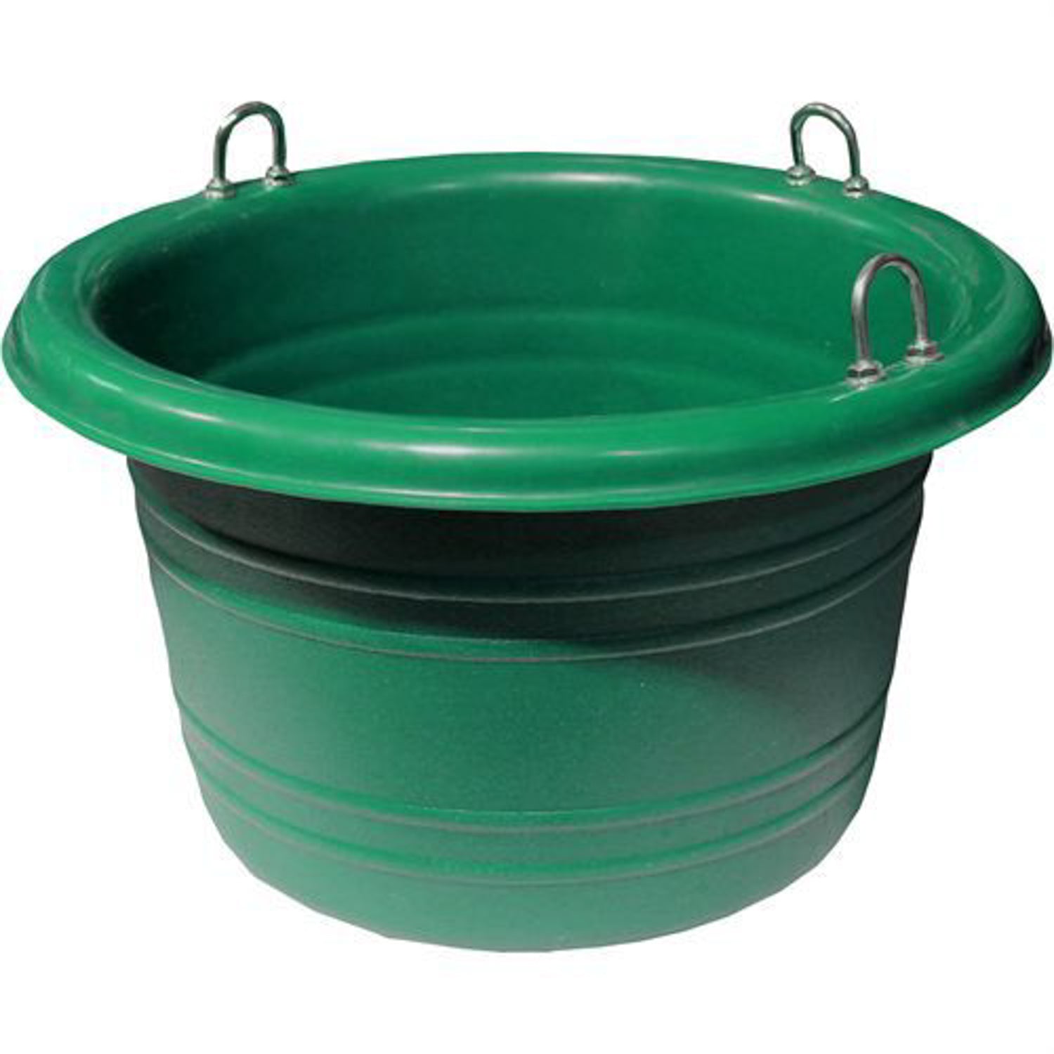 The Horsemen’s Pride™ Jr. Feed Tub is made of high-density, crush-proof plastic for durability. This 18-quart feed tub has three "U" hooks for attachment to stall walls.