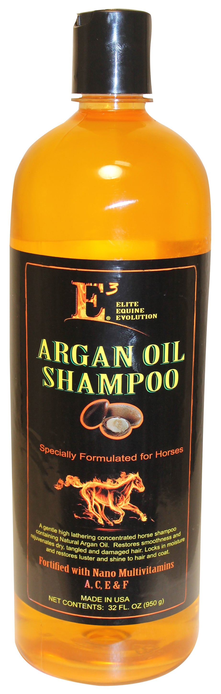 E3® Elite Equine Evolution Argan Oil Shampoo is a gentle, high-lathering, concentrated formula specially made for horses. It contains natural argan oil to help rejuvenate dry, tangled and damaged hair, restore luster and lock in moisture.