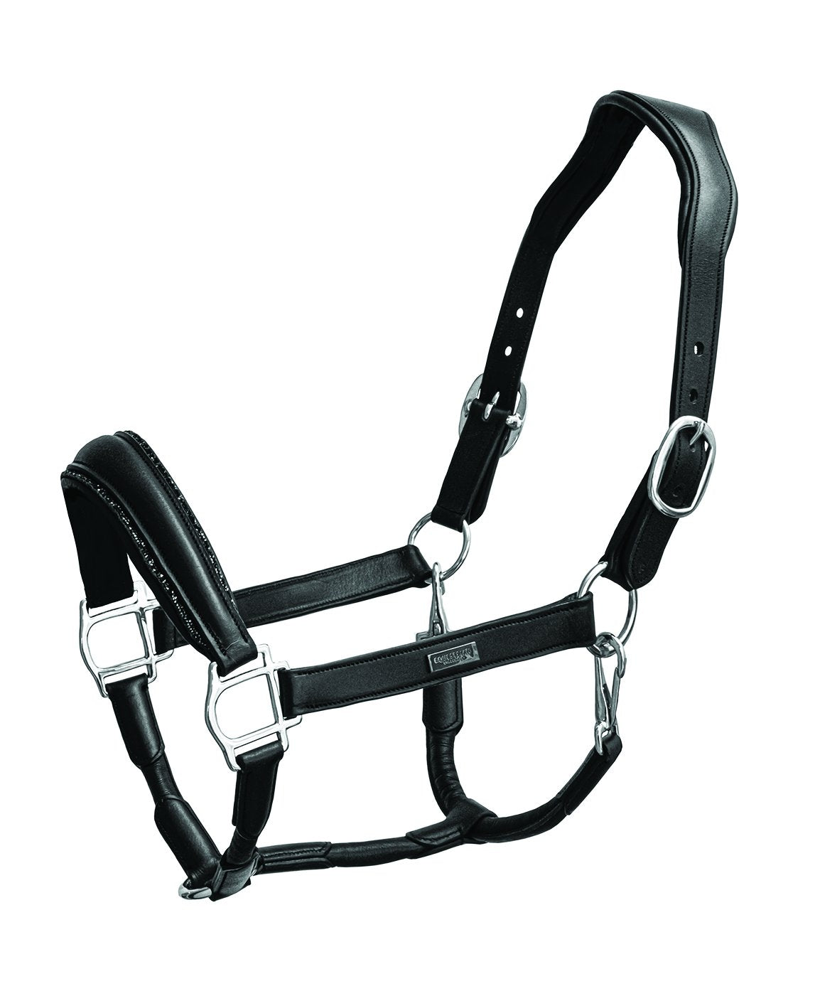 The Equestrian Stockholm Anatomic Leather Halter delivers a beautiful synergy of horse comfort, style and practicality. Crafted from high-quality, vegetable-dyed buffalo leather, it features a wide, anatomically shaped and padded crown. The design diffuses pressure over a larger area of the sensitive poll to increase comfort. The tapered nose, wider over the center than at the sides, is padded and decorated along the front with tiny black crystals.