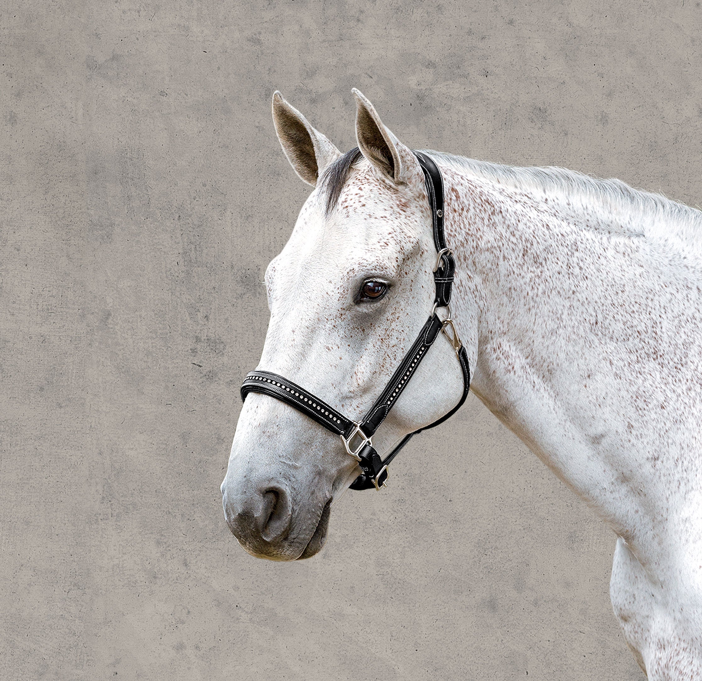 PRODUCT DESCRIPTION: Henri de Rivel Padded Leather Crystal Halter