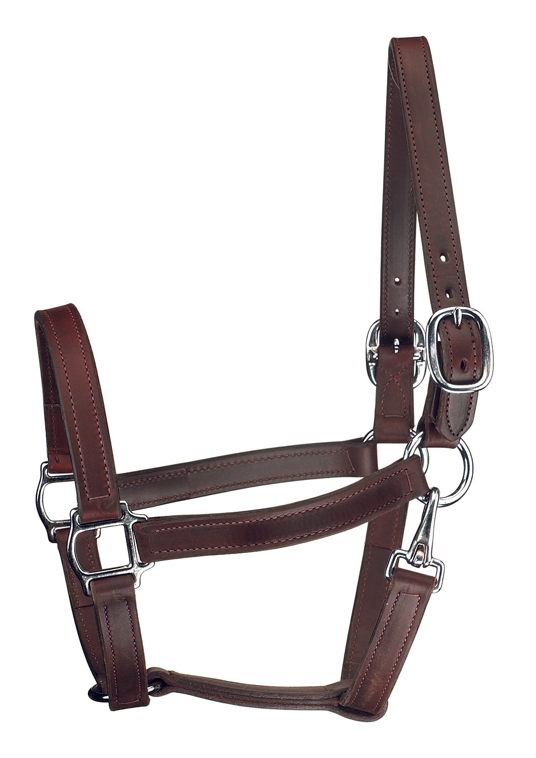 Perri’s® Track Style Turnout Halter with Snap is made in the USA by Amish leather workers. In 1" wide leather, it is designed for turnout. Double-buckle crown, fixed chin and a snap at the throat. Great quality at a very reasonable price.  Available with brass-plated or chrome hardware.