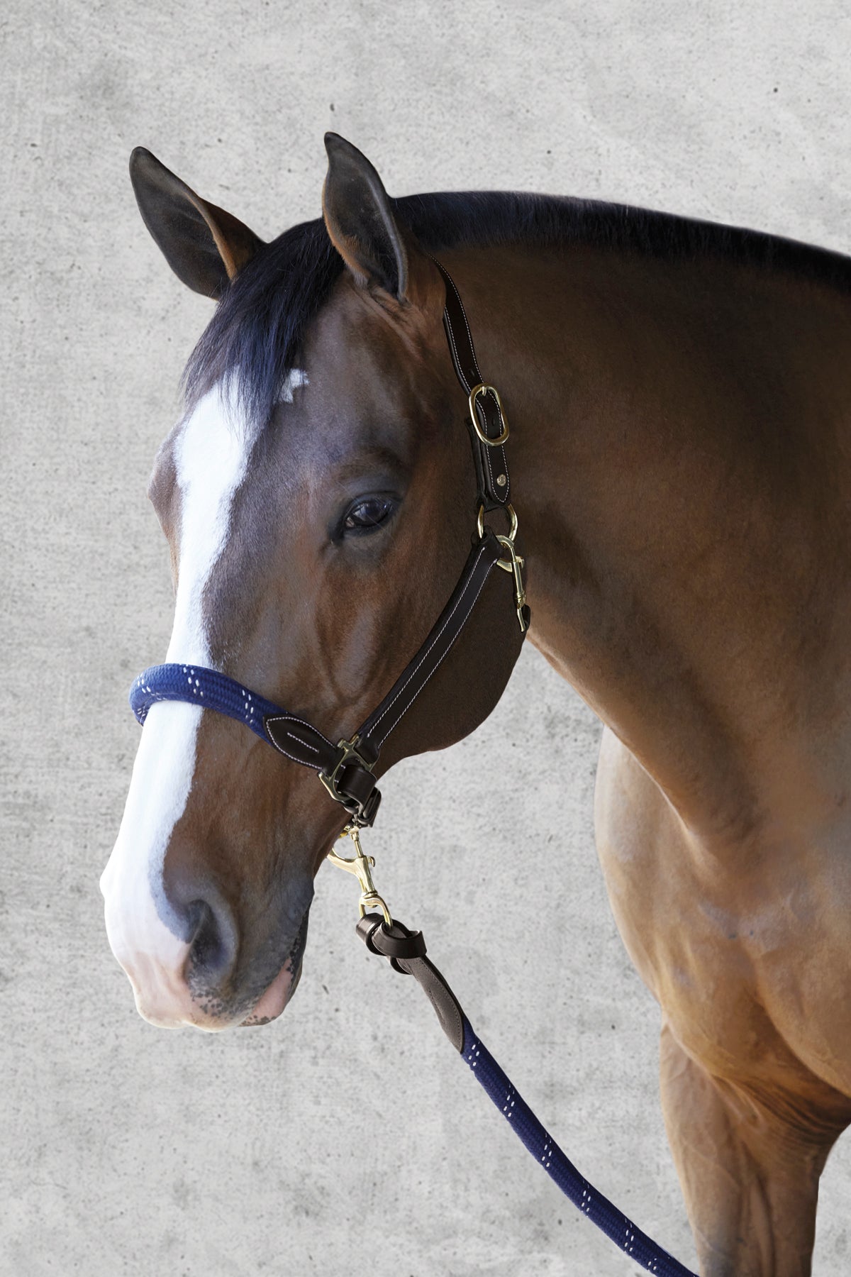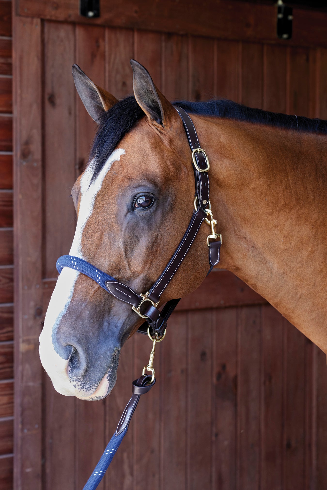 The Suffolk™ Leather & Rope Halter with Lead comes as a set and is fitted with brass-finished hardware. Designed for leading and ground training, the leather halter features a soft, poly rope noseband that applies gentle pressure on the horse’s nose. It is intended to be comfortable for the horse while providing the handler control.