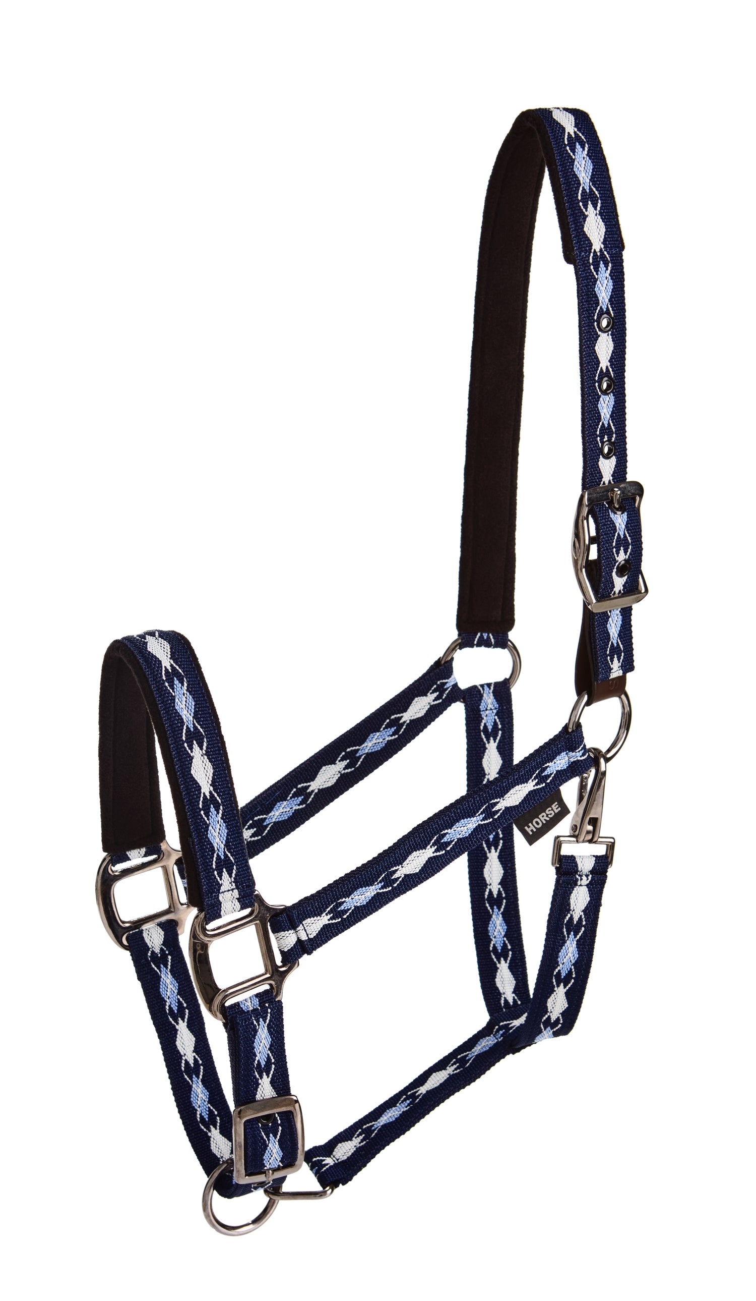 Our Suffolk® by Dover Saddlery® Woven Argyle Breakaway Halter has an easily replaceable leather fuse. For a stylish look with durability, a classic argyle pattern is woven into the 1" wide nylon webbing. Fleece lines the crown, nose and cheeks.