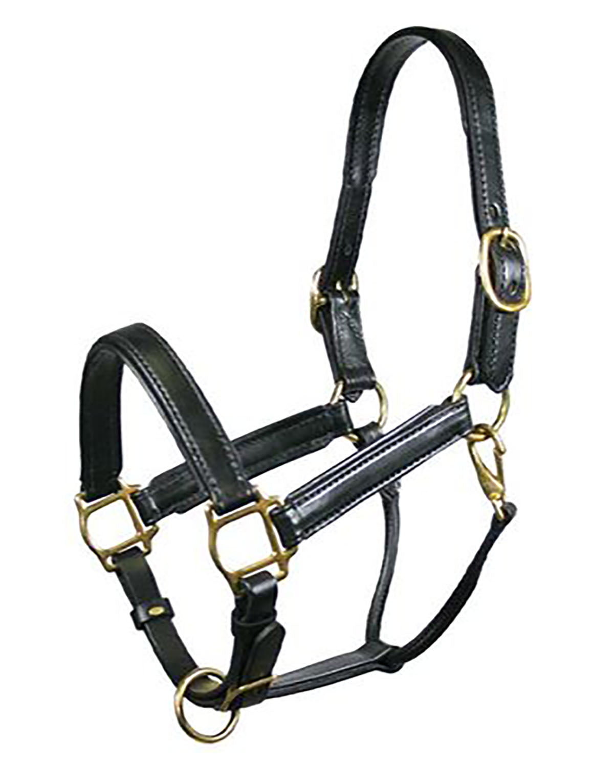 Made in the USA, this Padded Leather Halter by Tory Leather Company offers just a hint of color with minimal, contrasting leather padding on the noseband, crown and cheeks. The noseband can be adjusted with a buckle, and the adjustable crown has buckles on each side for the perfect fit. Rolled leather throatlatch with a snap for easy on/off. Quality 1" wide double-stitched leather with solid brass hardware.