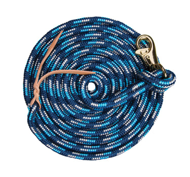 Strong enough for everyday use, the Kensington™ Clinician Training Lead (tricolored) 15' features 5/8" nylon braided rope. This long lead line has a leather popper at one end and is ideal for groundwork and a variety of training purposes. It easily clips to any leather, nylon or rope halter with a heavy-duty, quick-release swivel snap.