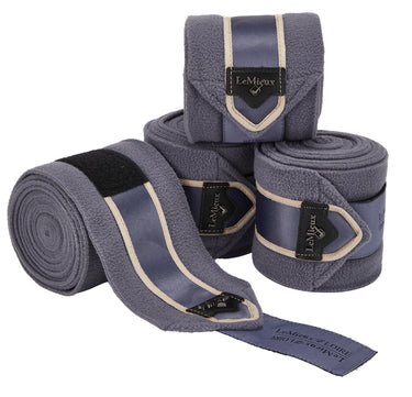 LeMieux® Loire Polo Wraps are cut from premium quality, anti-pill fleece. These beautiful exercise bandages secure with strong hook-and-loop closures that are detailed with satin fabric and topped with a metal logo plaque. Apply the wraps on their own or with exercise liners for extra protection. Set of four polo wraps comes in a reusable zippered case.