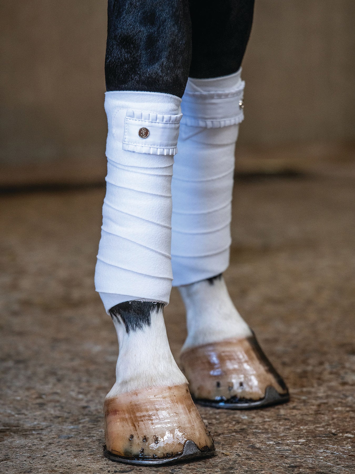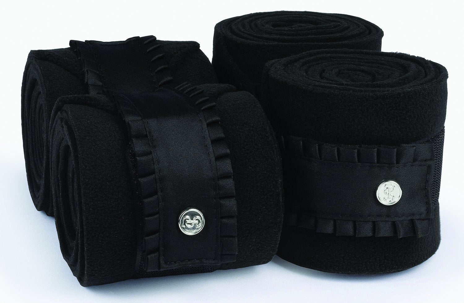 PS of Sweden Ruffle Polo Wraps in anti-pilling fleece make beautiful exercise bandages. Secure hook-and-loop strap closures have ruffle trim and a PS logo detail. Set of four wraps.