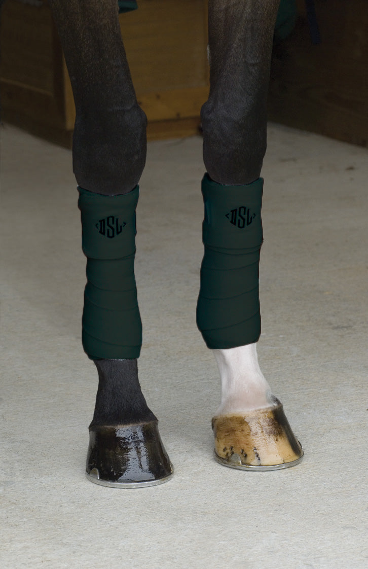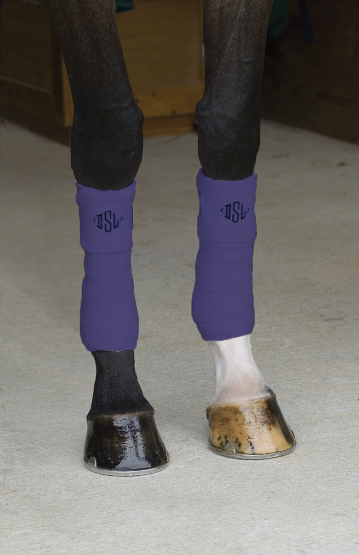Sized for ponies, each wrap is in a 2-yard length. A wide, 6" long durable hook-and-loop fastener is sewn to a neatly folded point for a clean look and strong hold. Set of 4 per package. Add a monogram for a custom look and easy identification.
