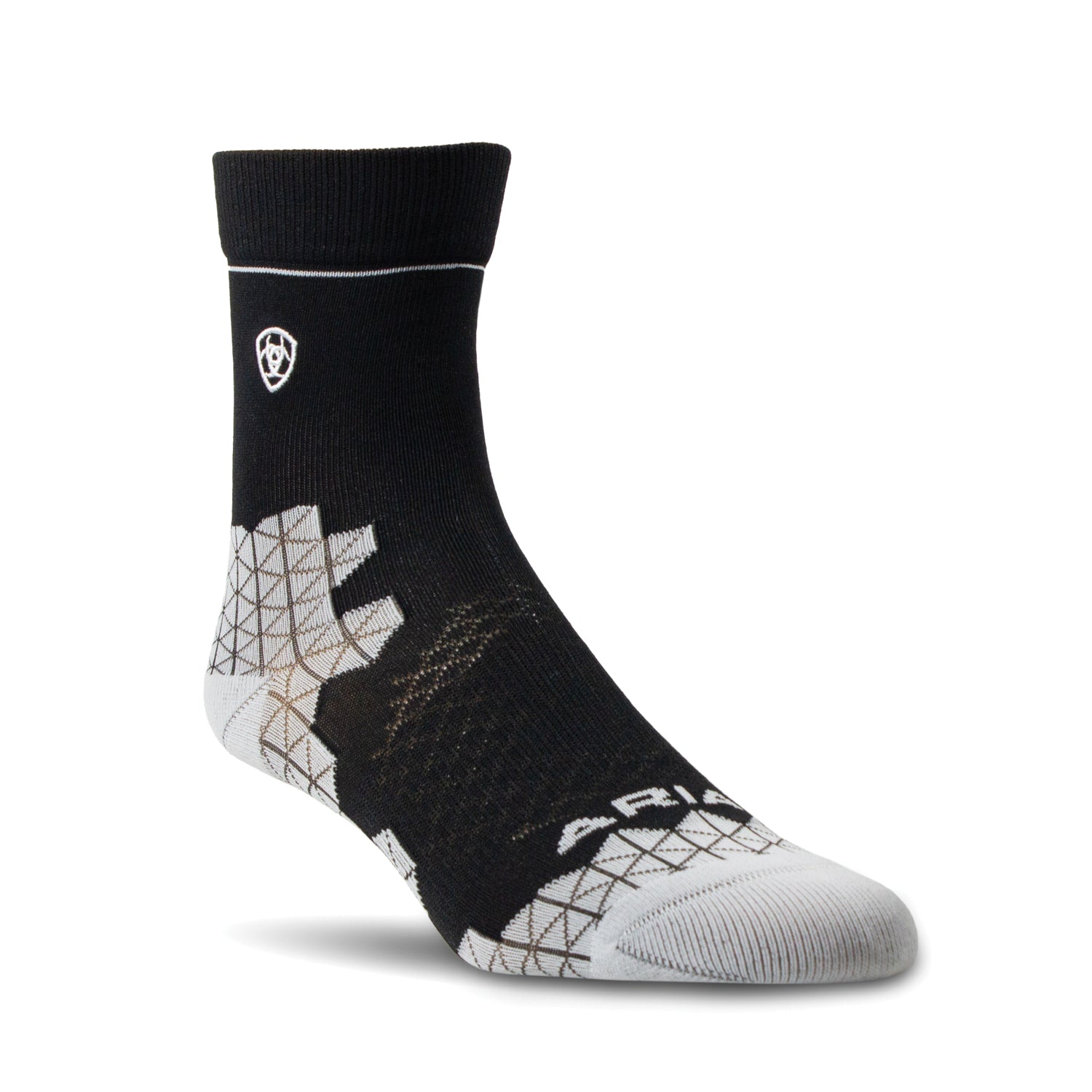 Specifically designed for equestrian performance, the AriatTEK® Devon Socks feature antimicrobial silver ion technology to keep feet feeling fresh. Breathable arch support and targeted cushioning in a paddock boot height, will keep you doing what you love for longer. Ankle tab for added cushioning. Arch support wrapped with breathable mesh. Targeted cushioning in areas you need it most. Comfortable seamless toe. Antimicrobial silver ion technology.