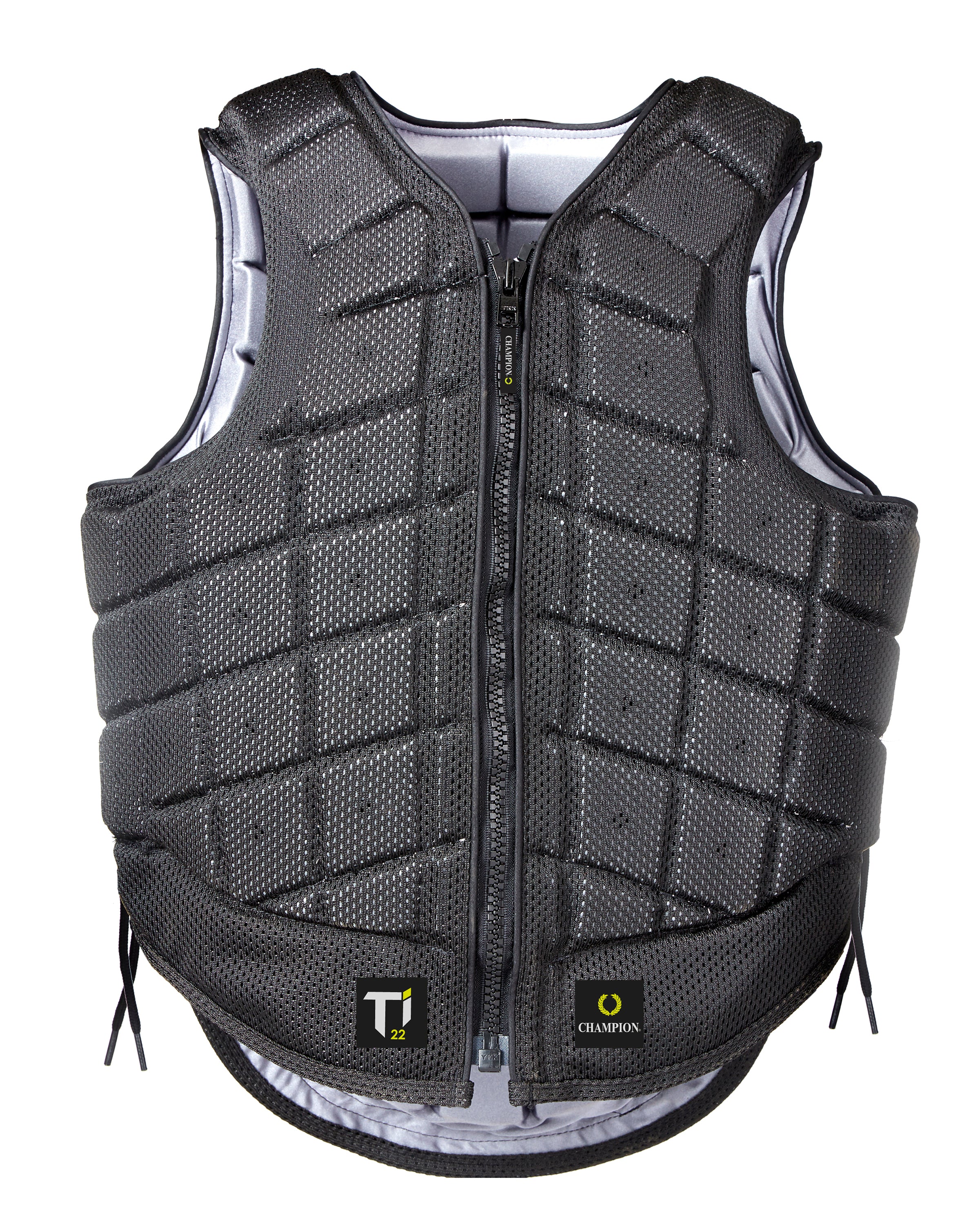 Built with a heavy-duty YKK® zipper, this equestrian body protector features military grade outer mesh fabric and a cool-feel titanium colored lining. Cord side adjustment offers flexibility of fit. Certified to EN 13158: 2018 Beta standard level 3, 2018.