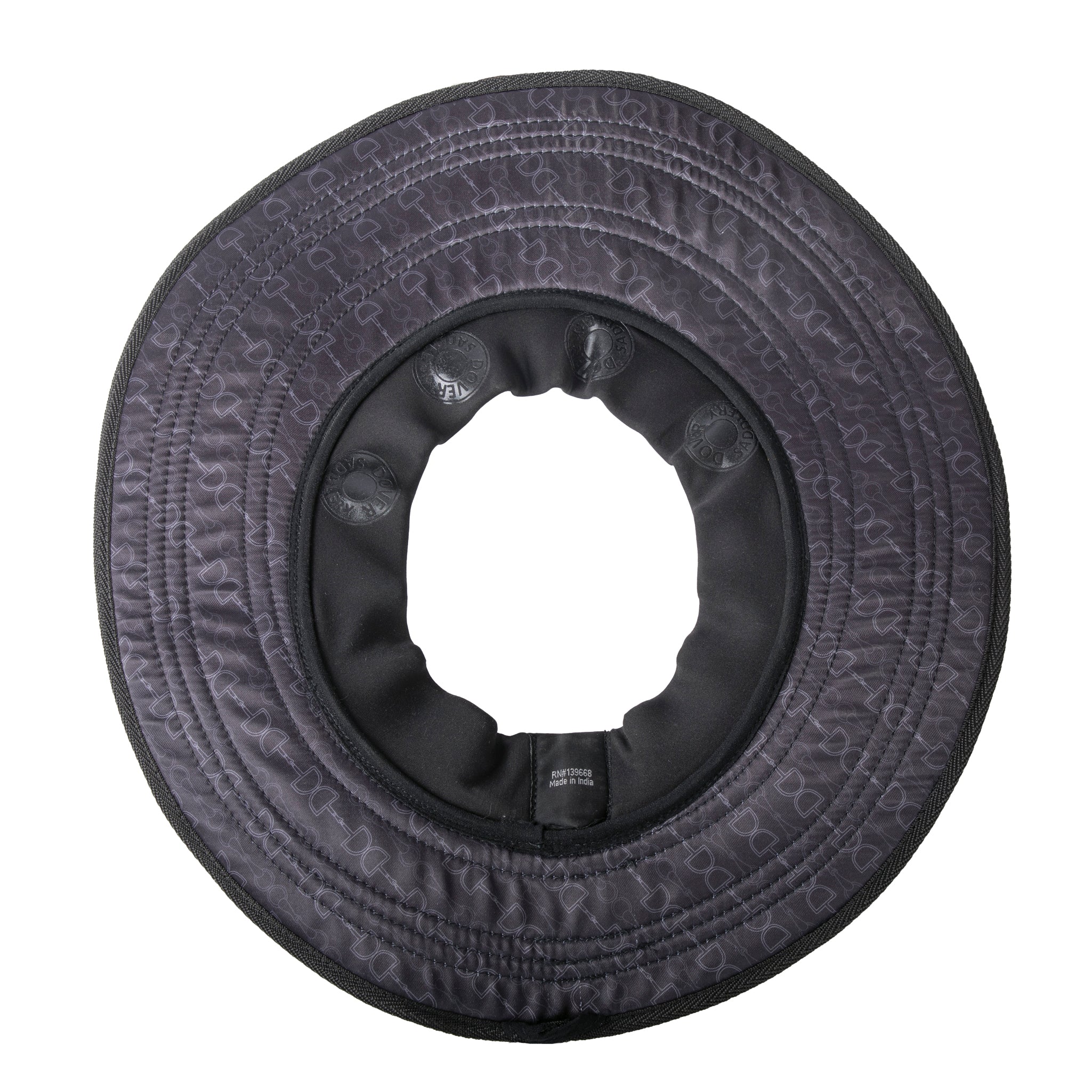 Add the Helmet Sun Brim to your riding helmet to shield your face, neck and shoulders from the sun. Designed by riders for riders, it stays in place from canter to gallop and fits over any equestrian helmet model and size. An elastic cuff and silicone logo grip maintains the snug fit.
