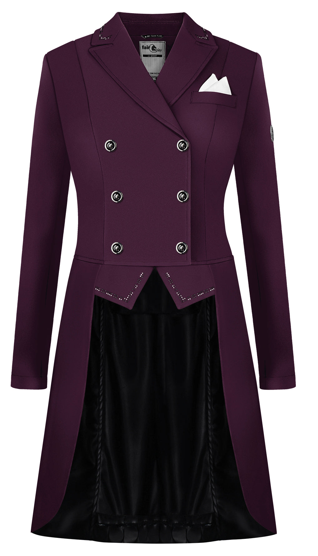 The elegant Fair Play® Nadine Shadbelly is beautifully tailored in elastic COMFINAT-tech™ fabric. This dressage tailcoat is highly breathable, extremely elastic and feels pleasant to the touch. The material provides long-lasting UV protection and resists wrinkles. Made with concern for the environment, it has innovative fibers derived from grain, unlike other polyester yarns. A mesh lining in the body promotes air circulation, while the tails are weighted evenly and lined with synthetic leather.