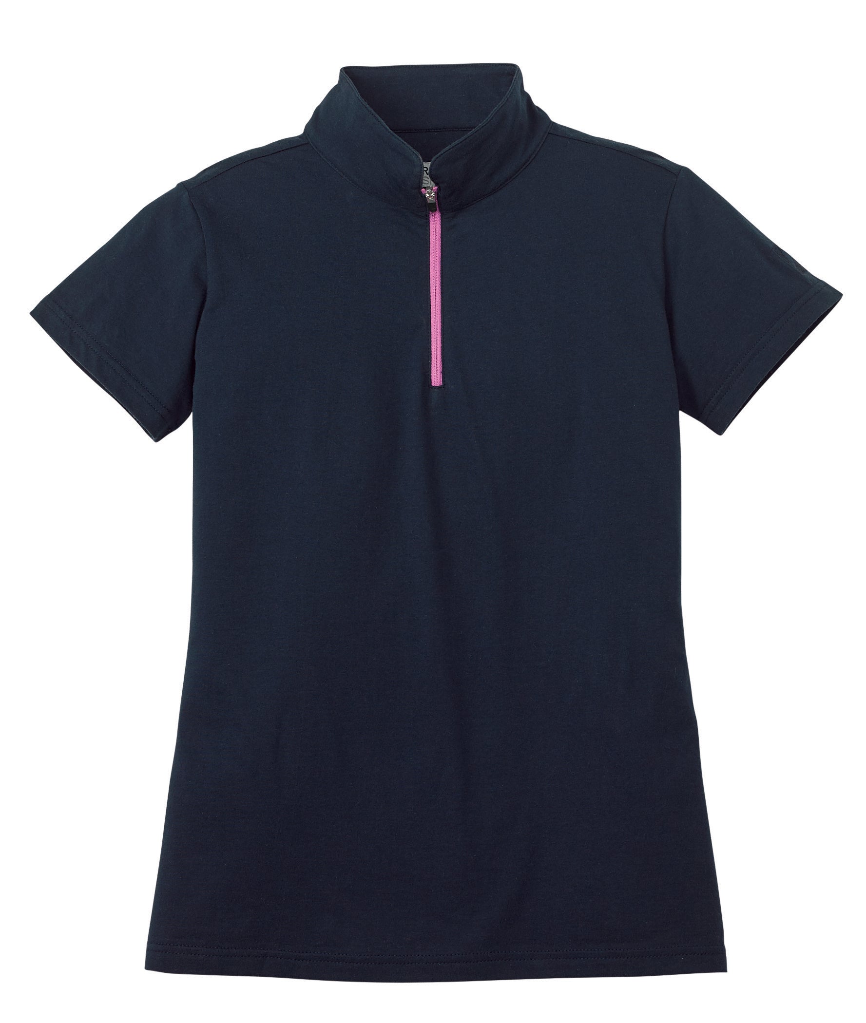 Styled with a relaxed fit, this soft cotton riding top has the perfect length to tuck neatly into breeches, and it looks great untucked, too. It is finished with a contrast zipper and comes in a great selection of colors—you’ll want one of each!