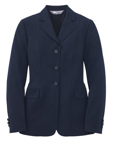 The R.J. Classics Nora Soft Shell Show Coat combines the polish of a traditional three-button front with the streamlined look of a hidden front zipper. Half-lined with mesh for the ultimate in cool comfort, this ladies’ show jacket features moisture-wicking soft shell stretch fabric with UPF 50+ to shield you from the sun. Antibacterial properties prevent odor buildup and stain releasing properties allow for easy cleaning. The classic coat is nicely finished with front flap pockets and RJ branded metal shank buttons at the front and cuffs.