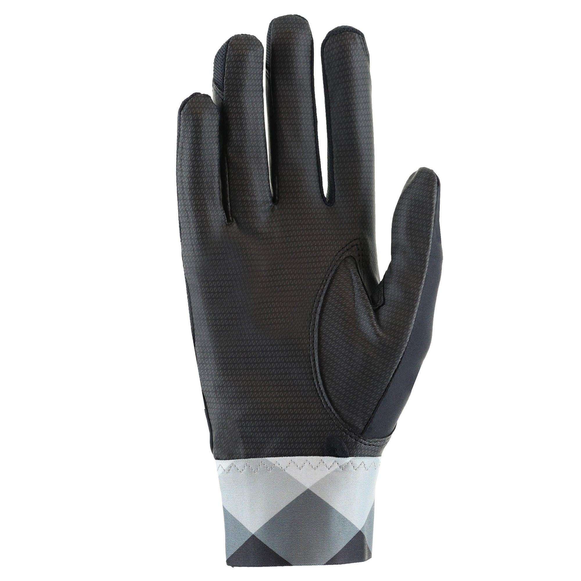 Roeckl® Unisex Martingal Gloves offers stylish looks, premium functionality, and sustainability. The backhand is equipped with elastic and breathable Micro Mesh Eco made from 82% recycled polyamide and 18% recycled spandex and is sewn with durable ECONYL® yarn produced from recycled fishing nets and other nylon waste. The exclusive palm design features ROECK-AIR®, which is especially breathable thanks to its micro-perforation and guarantees a secure grip and seamless feel on the reins. The wide wrist cuff allows for a perfect fit. Comfort Cut for close contact feel and performance.