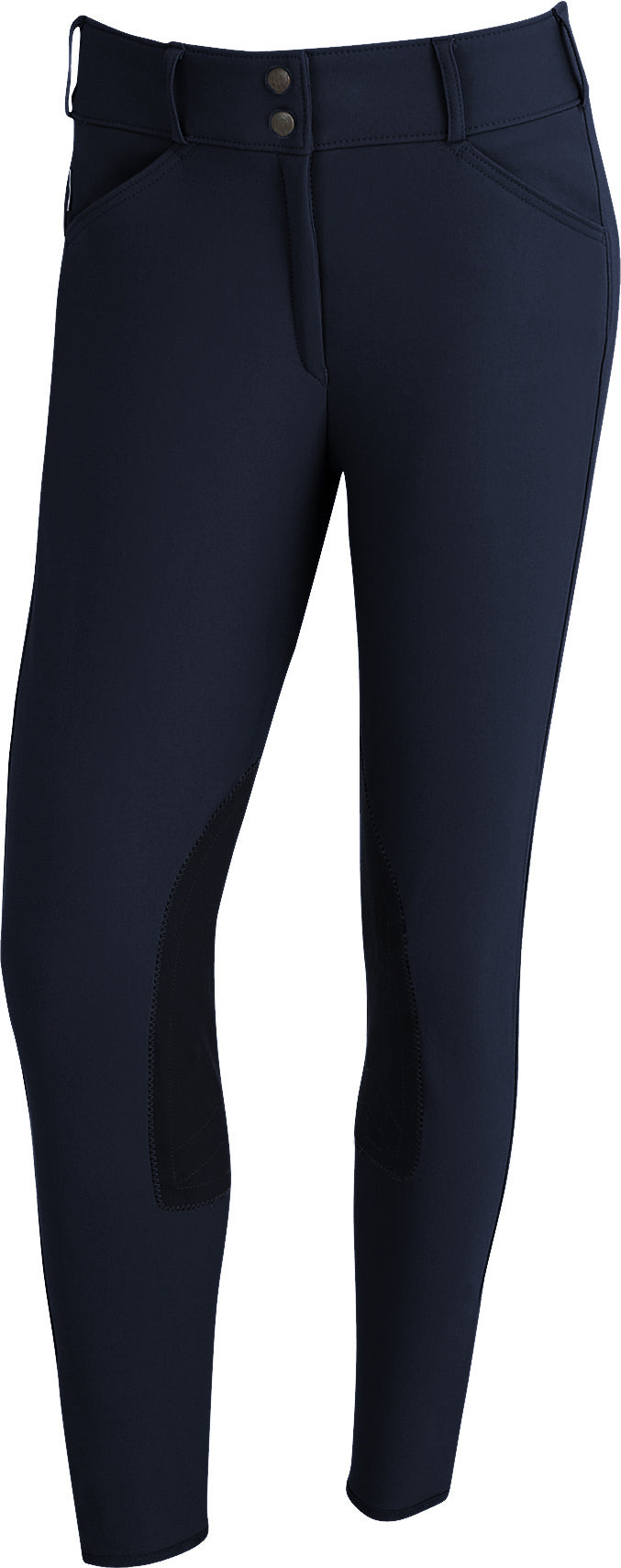 THE TAILORED SPORTSMAN™ Trophy Hunter Mid-Rise Front-Zip Breech represents a happy medium of comfort and fit in lightweight, woven TS fabric with four-way stretch. The mid rise sits 1" higher than a low rise, but has a slightly higher back for a little extra coverage in the saddle. Two front pockets, Clarino™ knee patches, 2" wide waistband with belt loops, Velcro® brand ankle closures.