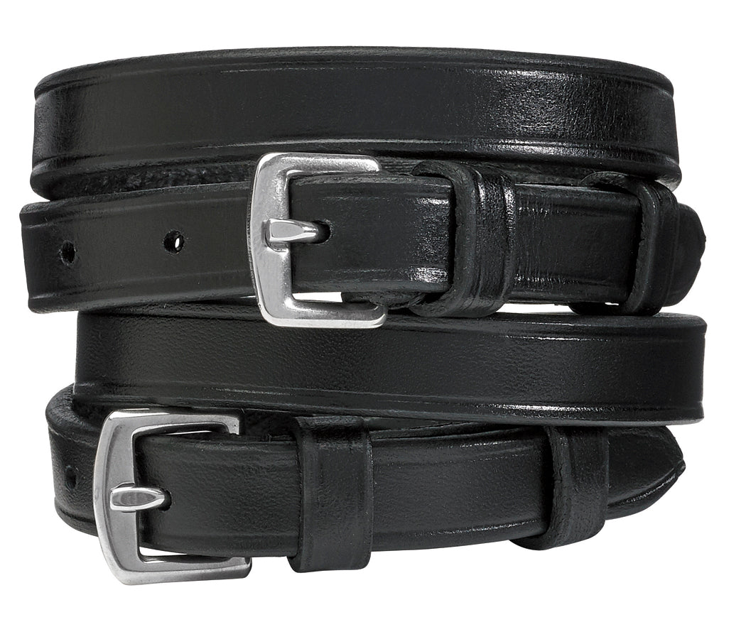 Toklat® Premium Leather Spur Straps are half-inch wide. Equipped with double keepers so strap will lay flat against your boot. Stainless steel buckle. Black. Pair.