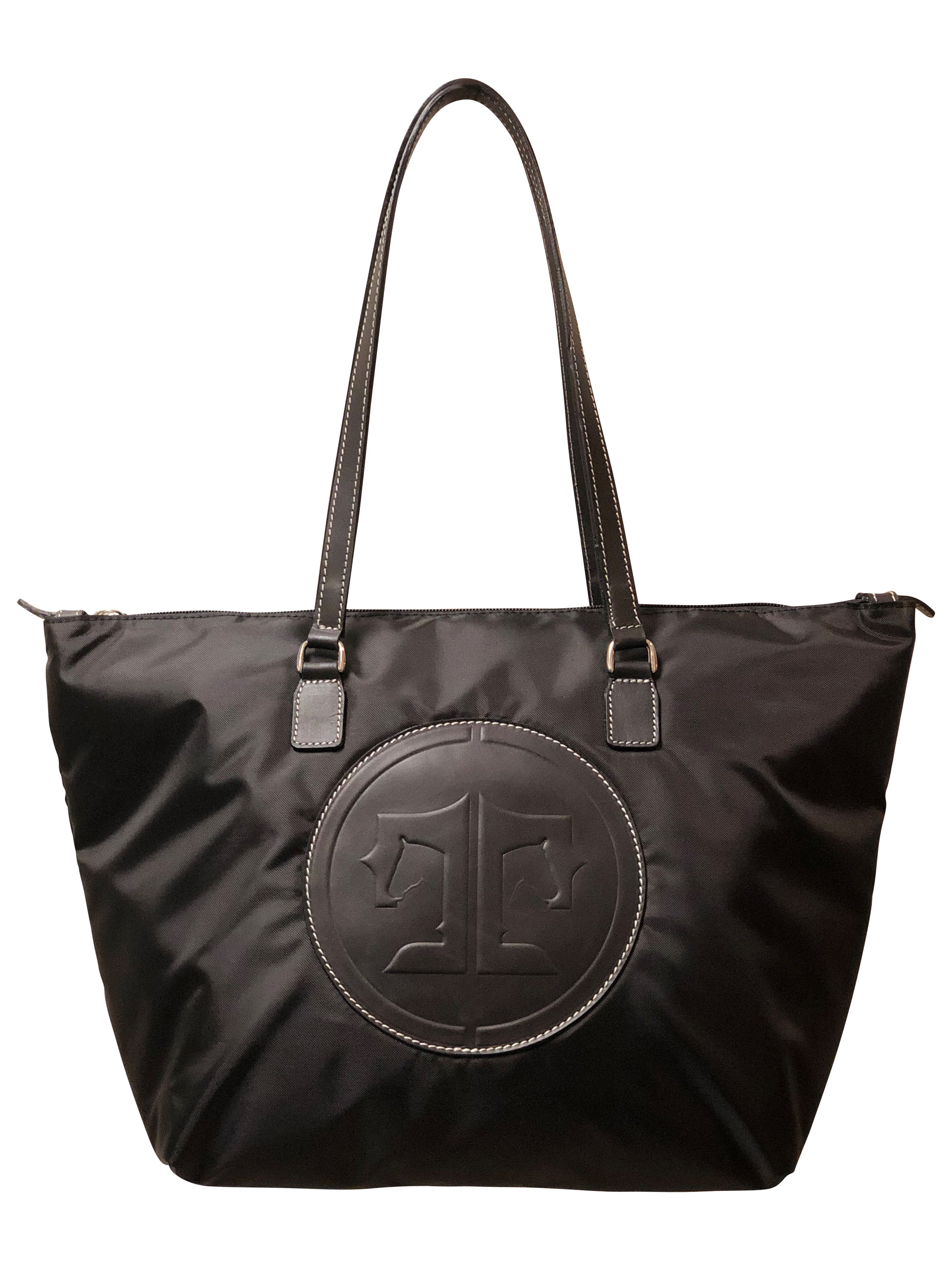 Named respectfully after the oldest, most iconic horse show grounds, the Tucker Tweed Equestrian™ Devon Day Bag offers ample storage. This stylish shoulder bag is perfectly designed for daily use in padded heavy-duty 900 denier black nylon. It’s accented with smooth, full-grain leather trim and equipped with supple oil-rubbed leather shoulder straps.