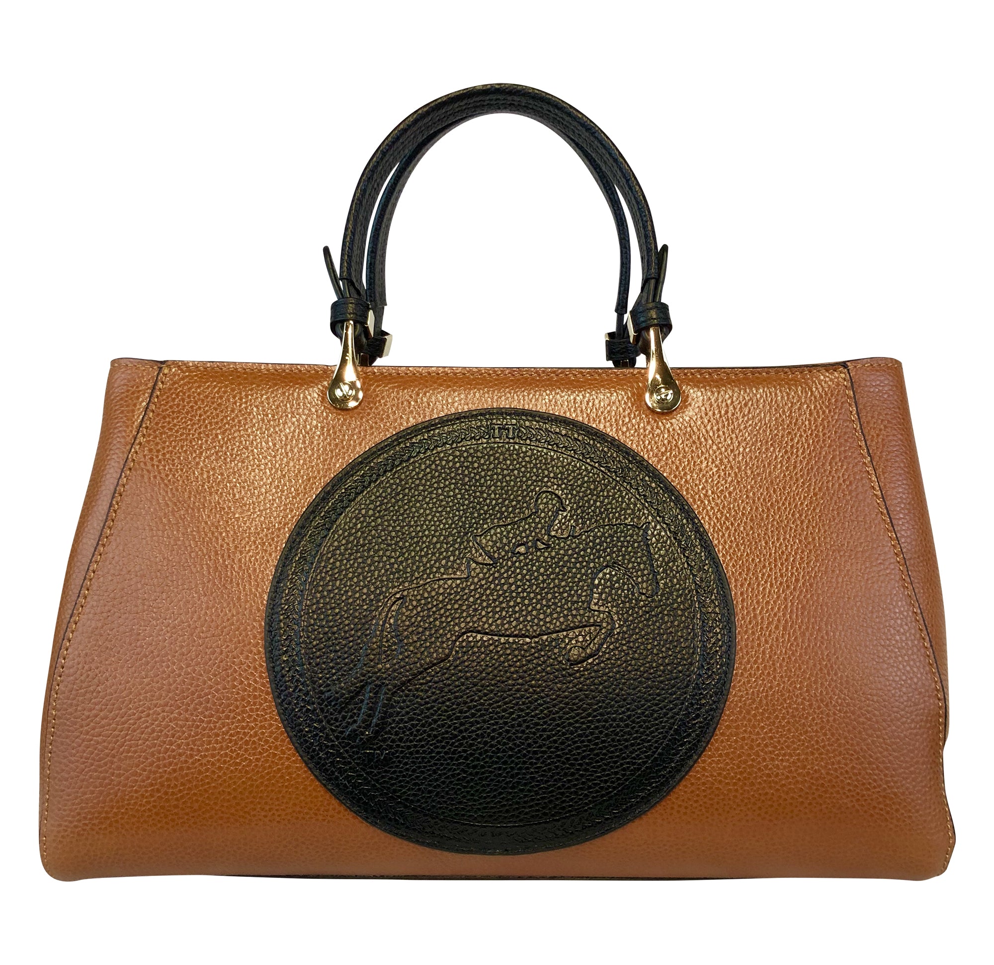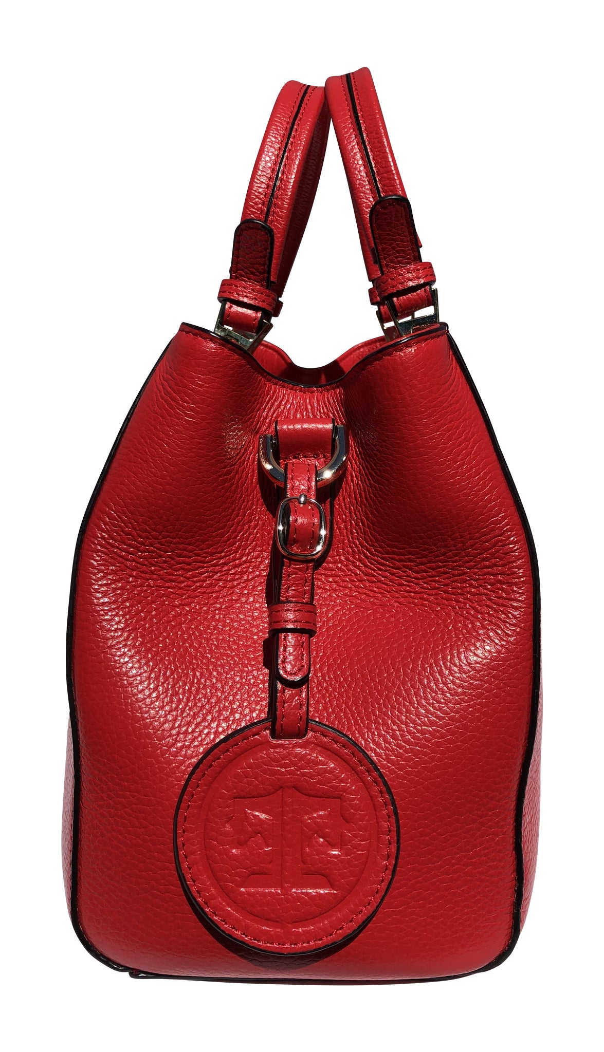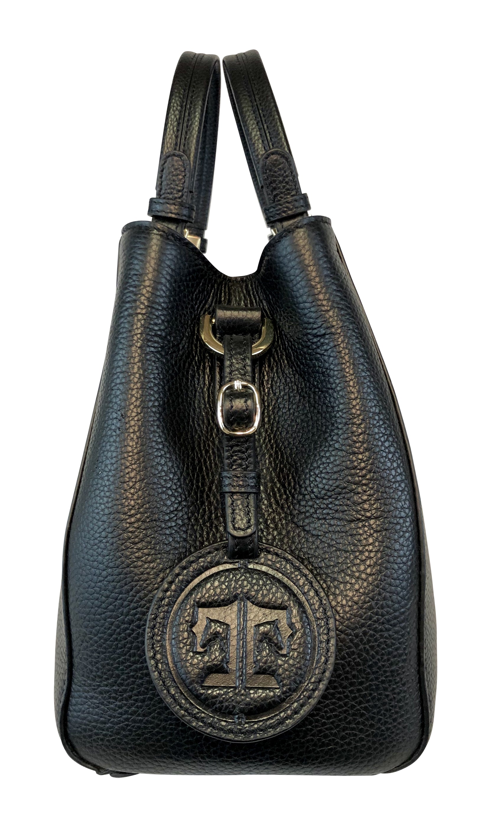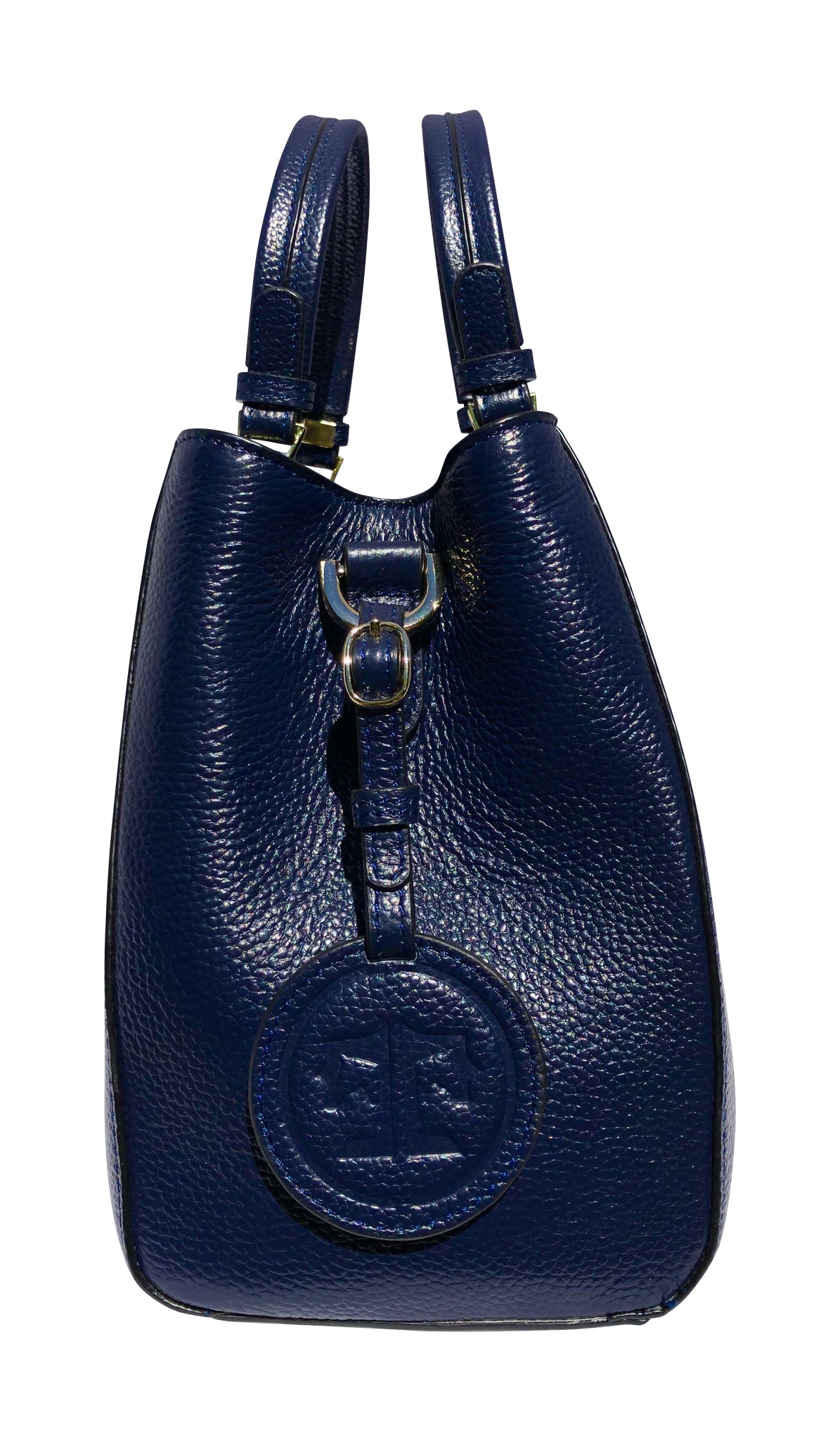 A nod to tradition, this leather bag is lady-like, structured and sophisticated in style. Finished in beautiful shades of premium, pebble grain leather, it is complete with golden hardware, rolled leather double handles and an on-trend removable shoulder strap. The interior zips shut for complete security.