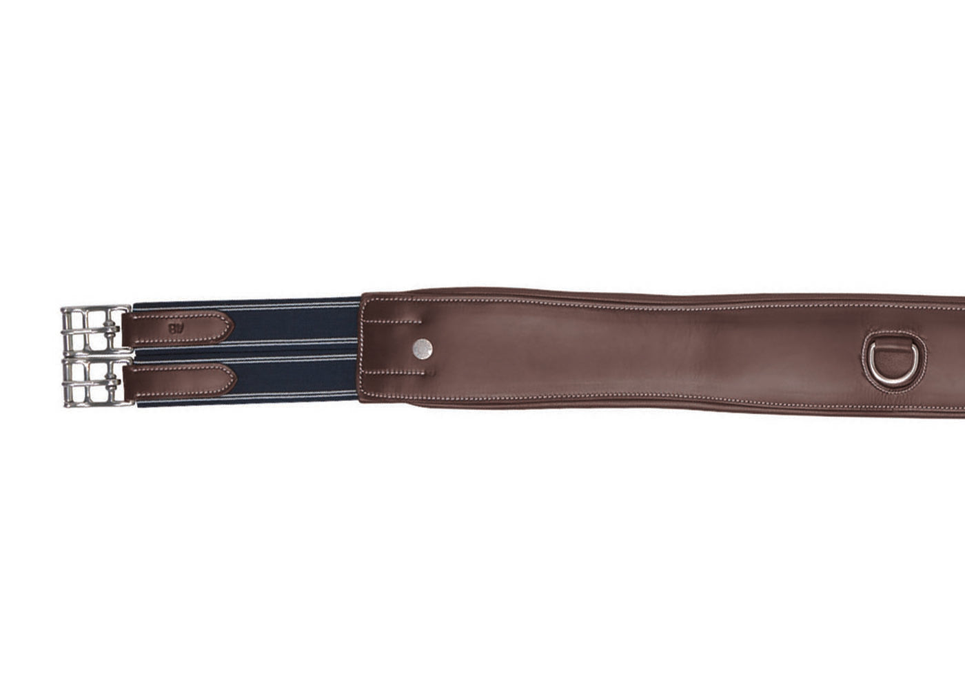 Triple elastic and stainless steel roller buckles at both ends provide give and allow easy adjustments. A recessed center d-ring is discreet. Made of two brown leathers, the InDulge Classic Hunter Girth will complement most saddles.