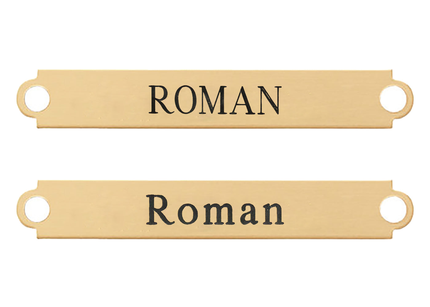 Our Fancy Bridle and Accessory Plate is an attractive way to label your horse’s bridle, leather lead or other items. The plate will be engraved in the USA in your choice Block, Old English, Roman or Script letters with your horse’s name or your name. Predrilled 5/32" holes fit rivets for attachment. Two sizes of rivets are included to allow you to attach the nameplate to either a padded or flat leather bridle. Choose Brass or German Silver. Usually ships in 2-4 business days. Personalized items are not returnable.