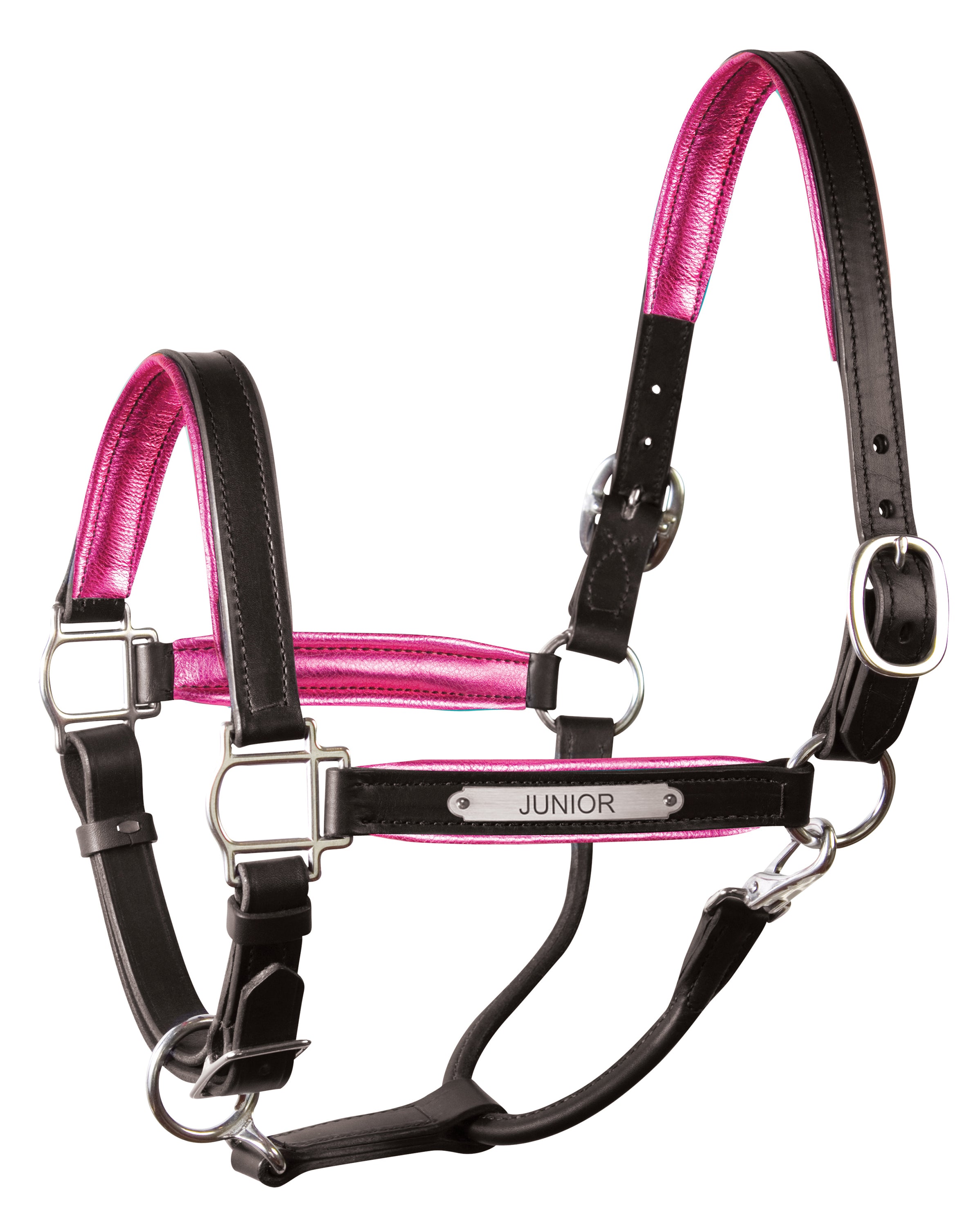Colorful, genuine lambskin padding makes each piece exquisite, and it comes with a matching engraved nameplate. The incredibly soft, luxurious leather padding not only adds character and beauty to your halter, but also gentleness against your horse’s skin.