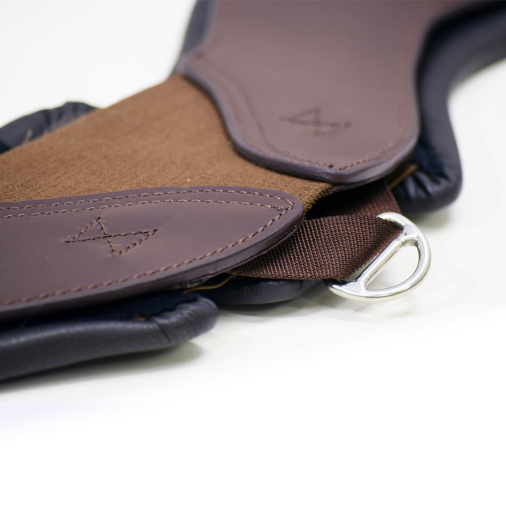 The triangular center elastic allows the girth to expand with the 1.5cm chest expansion that horses experience while breathing. Its design also allows it to stretch in a more anatomically friendly way to contour better to a horse’s barrel and provide even contact through the sternum area.