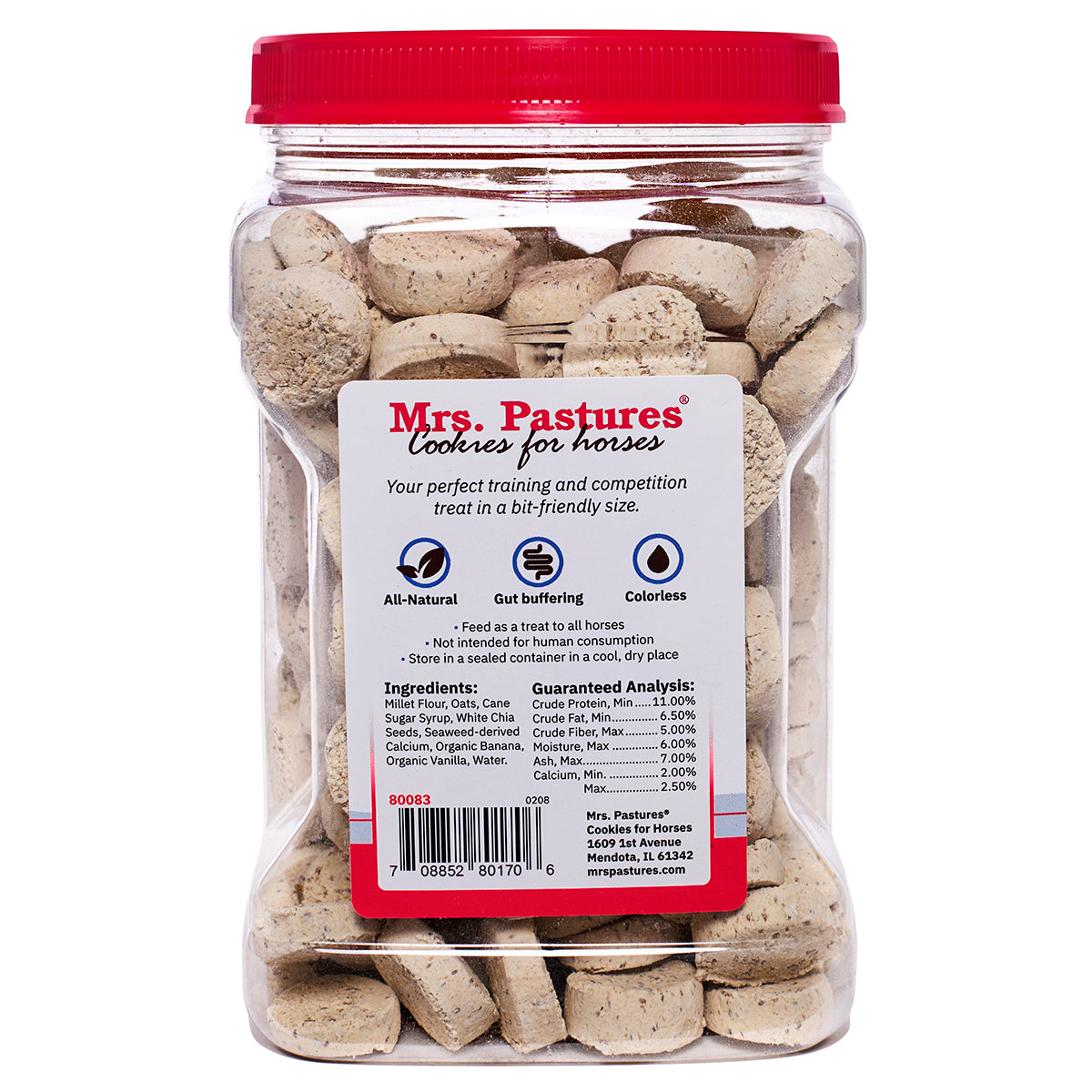 Mrs. Pastures Ring Ready Cookie has been nourishing the bond between humans and horses since 1986. Ring Ready is specifically designed to be fed before or during riding. Its colorless appearance keeps you and your horse looking “Ring Ready.” Designed with horses in mind, this cookie features gut-buffering technology to help horses cope with stress.