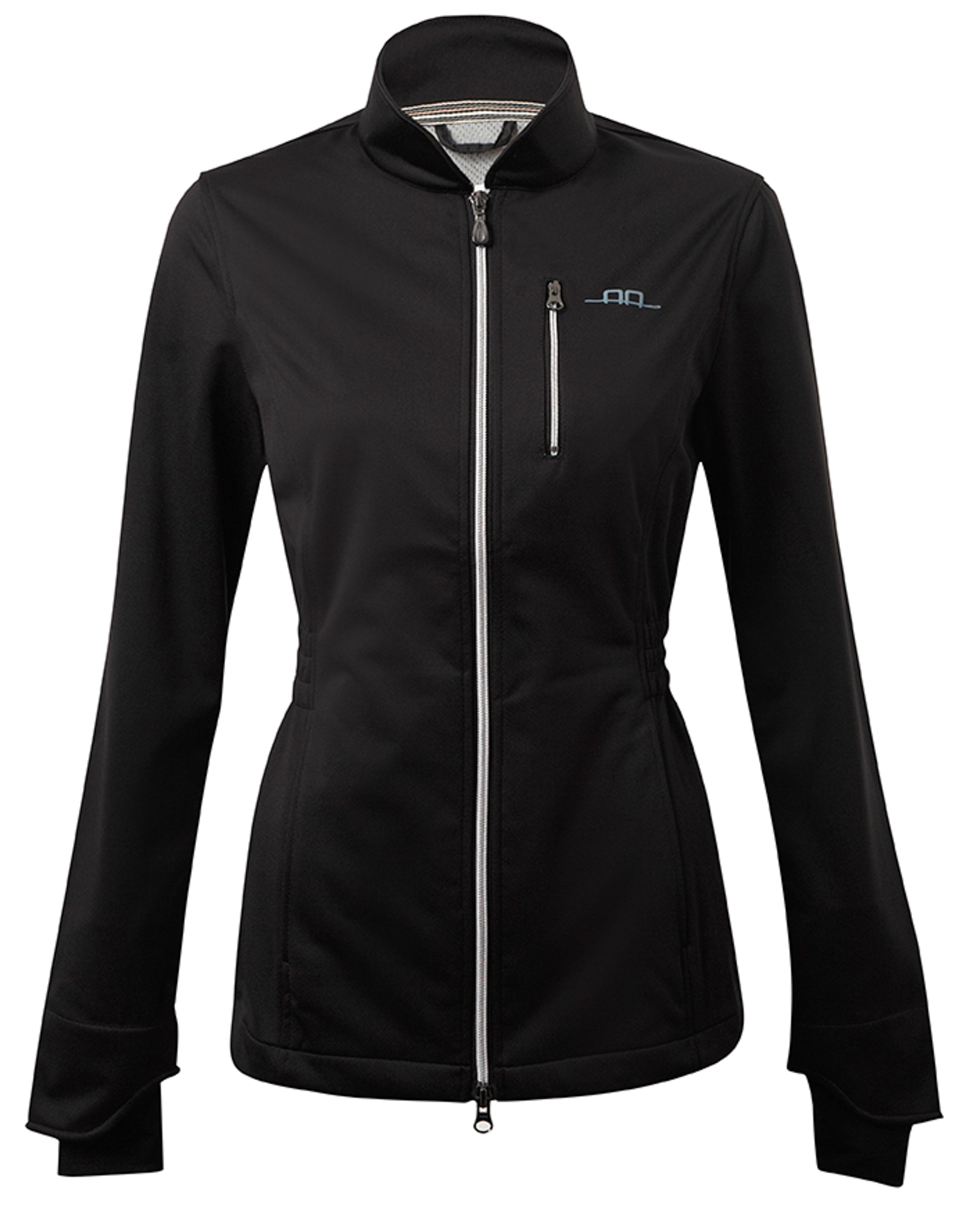 The technical AA® Ladies’ Enna Soft Shell has waist detail to define an elegant female silhouette. In waterproof, breathable bonded fabric, it has internal thumbhole cuffs, a secure zip chest pocket and two-way zipper specifically for riding.