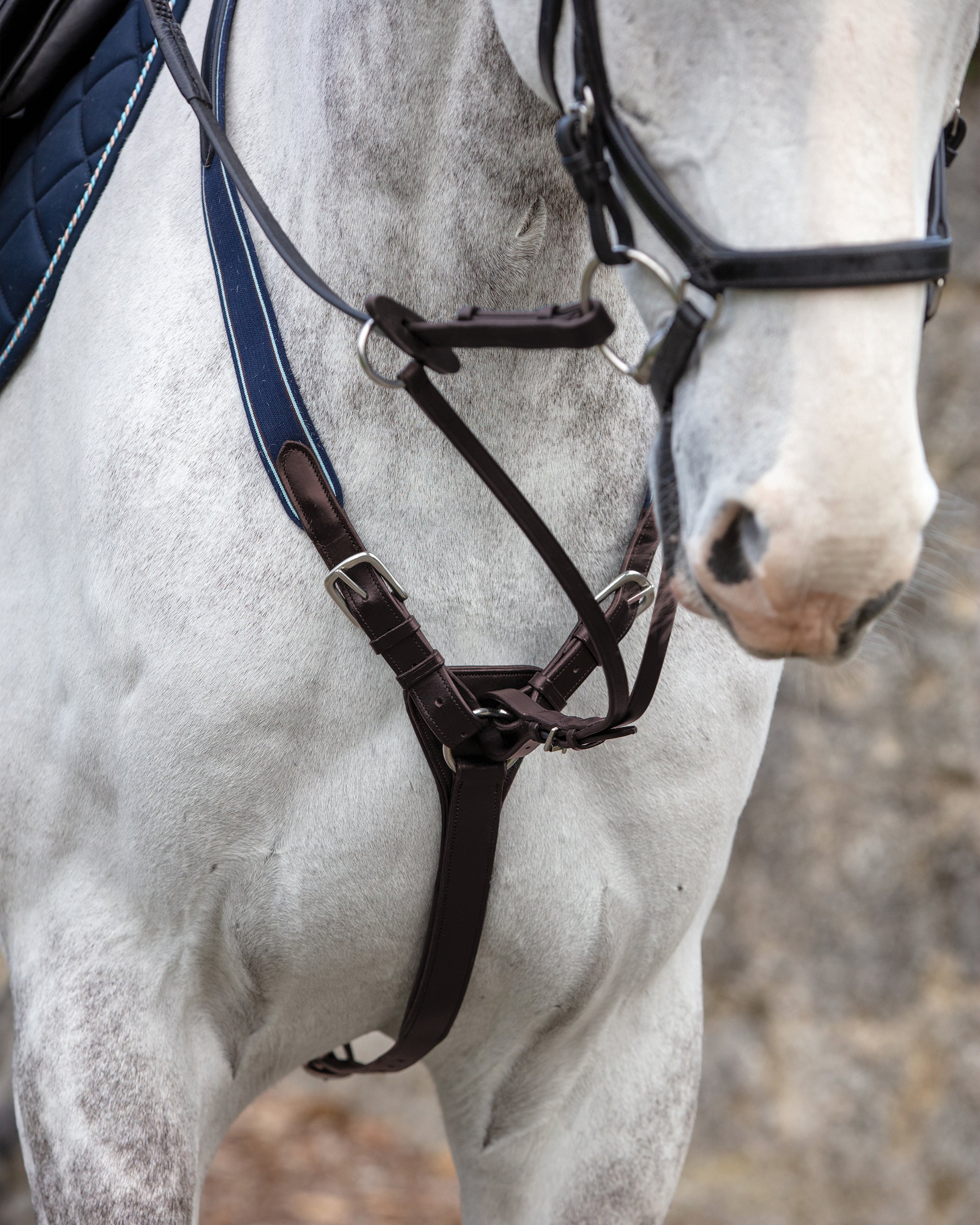 - Maximum adjustment possibilities on the sides of the neck, underbelly strap and detachable martingale attachment.