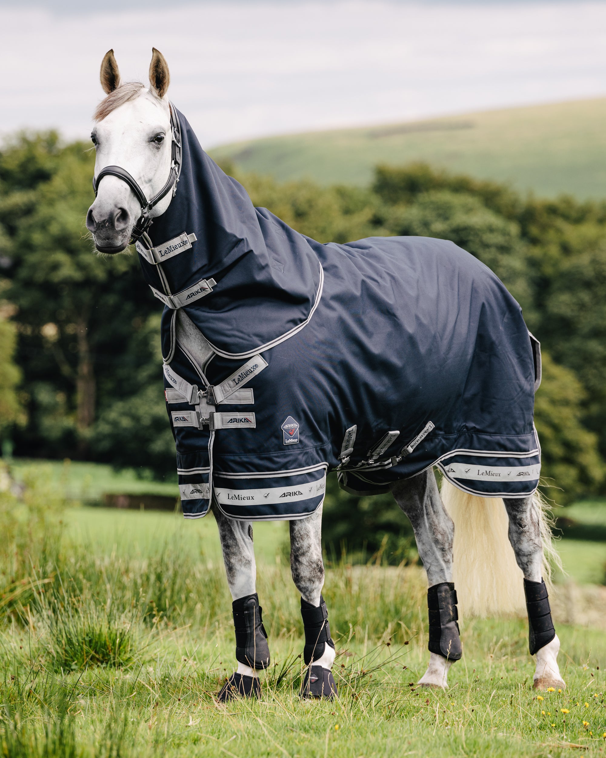 The LeMieux® Arika Storm-Tek 100 Gram Turnout Blanket with removable neck cover is a revolutionary design made with innovative materials to ensure your horse’s comfort and protection during turnout. It boasts a super-tough 1200 denier waterproof, breathable outer, 100 grams of thermobonded fill as insulation and a smooth, antibacterial and antistatic lining.